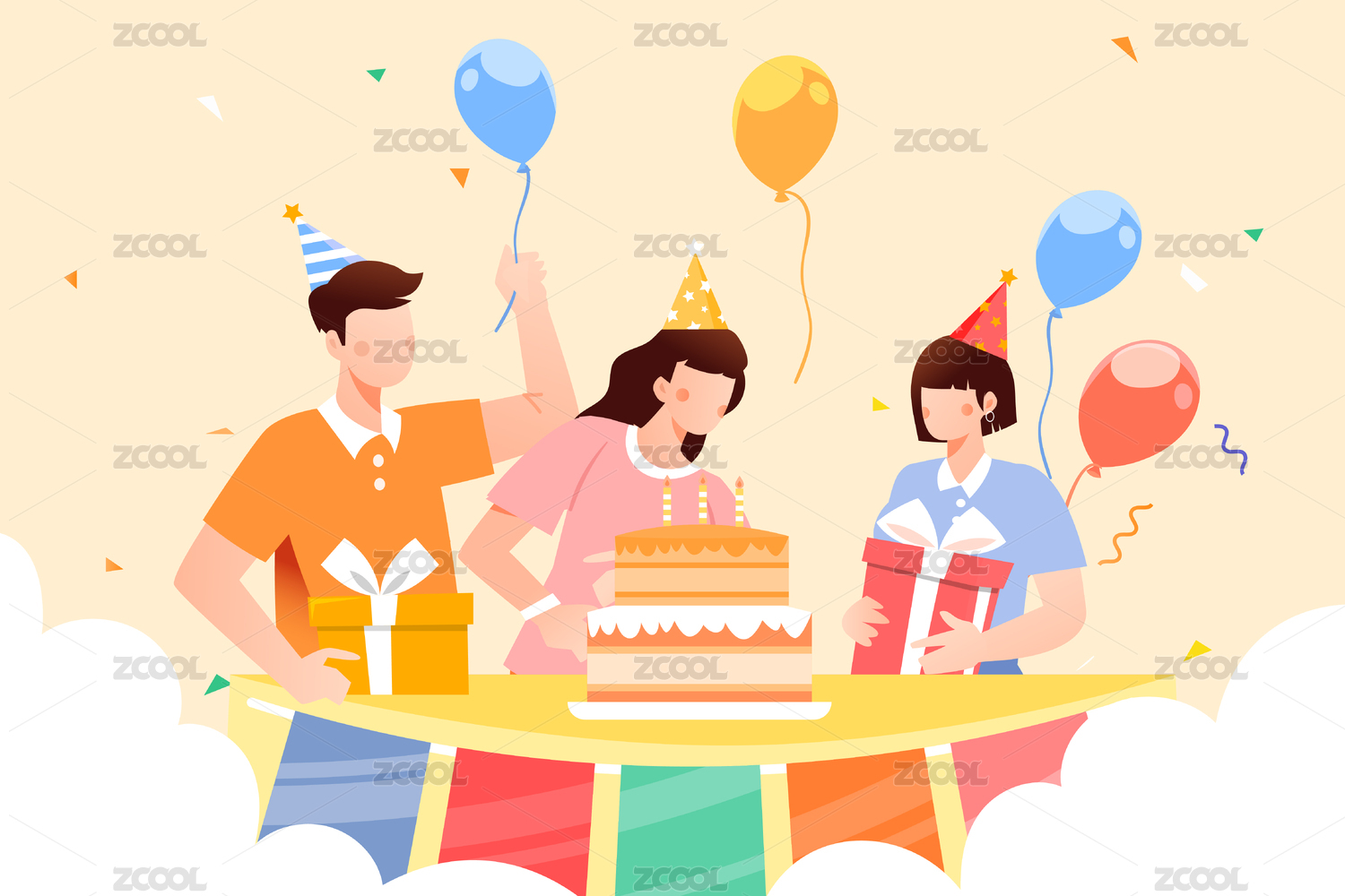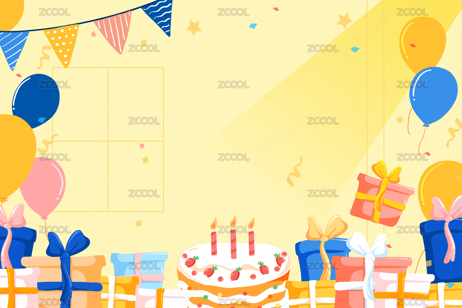 生日蛋糕周年庆纪念日礼盒节日插画海报
