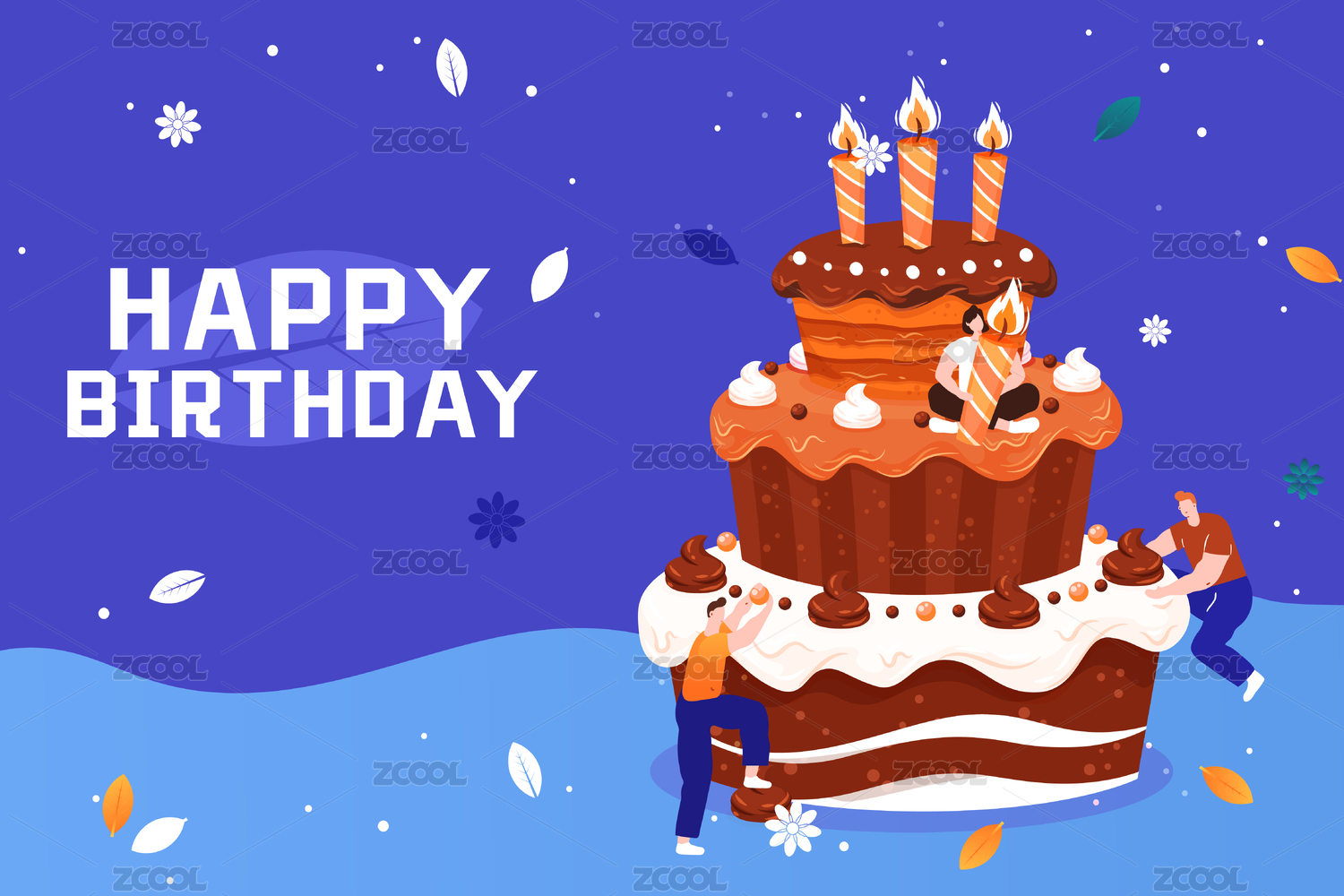 生日快乐矢量插画蓝色