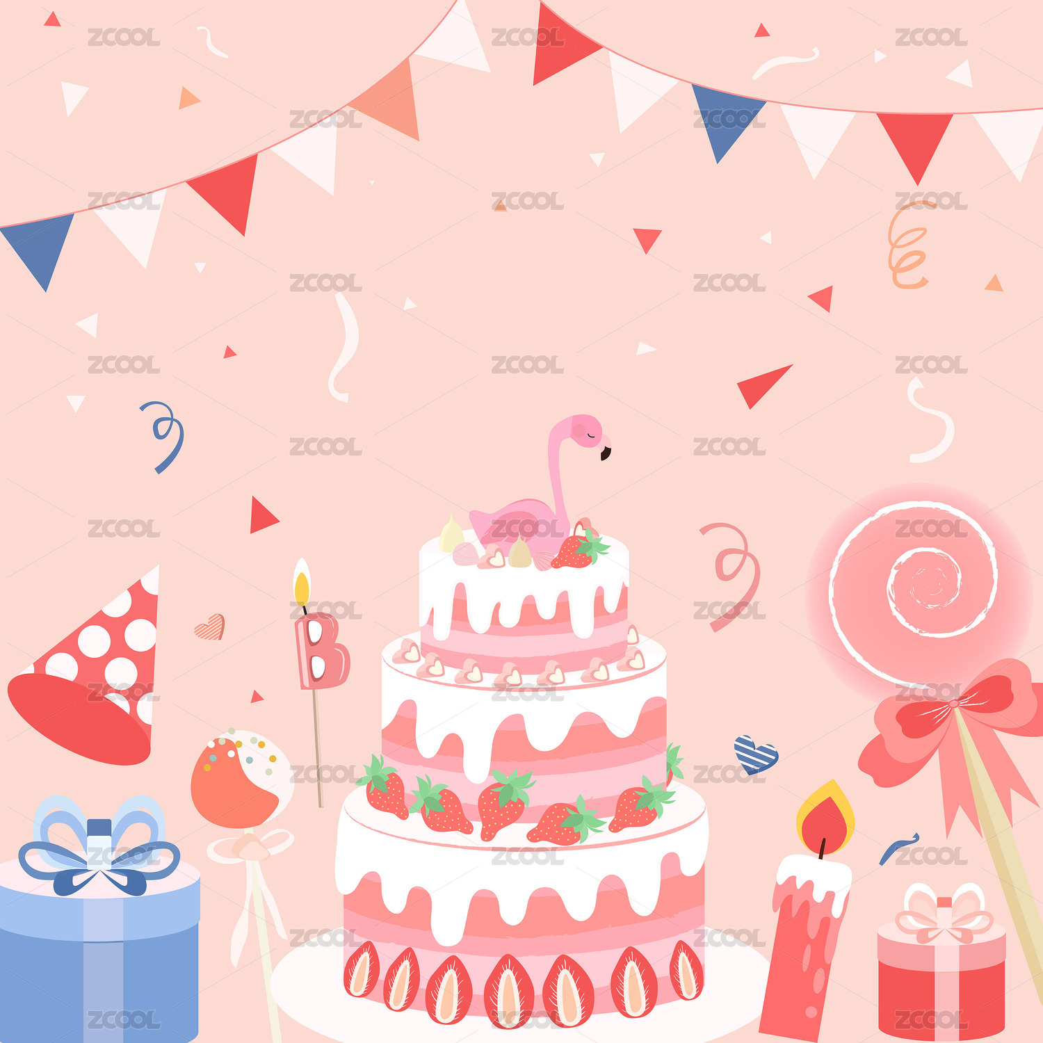 卡通手绘粉色生日元素图案