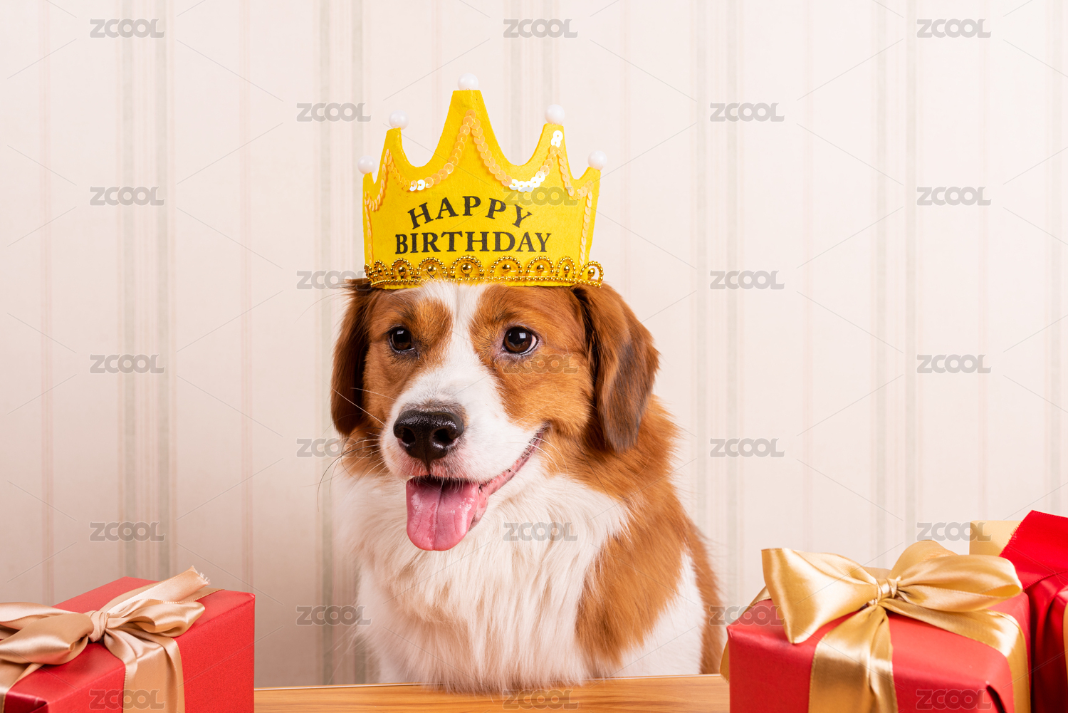 在室内开心过生日的宠物狗狗