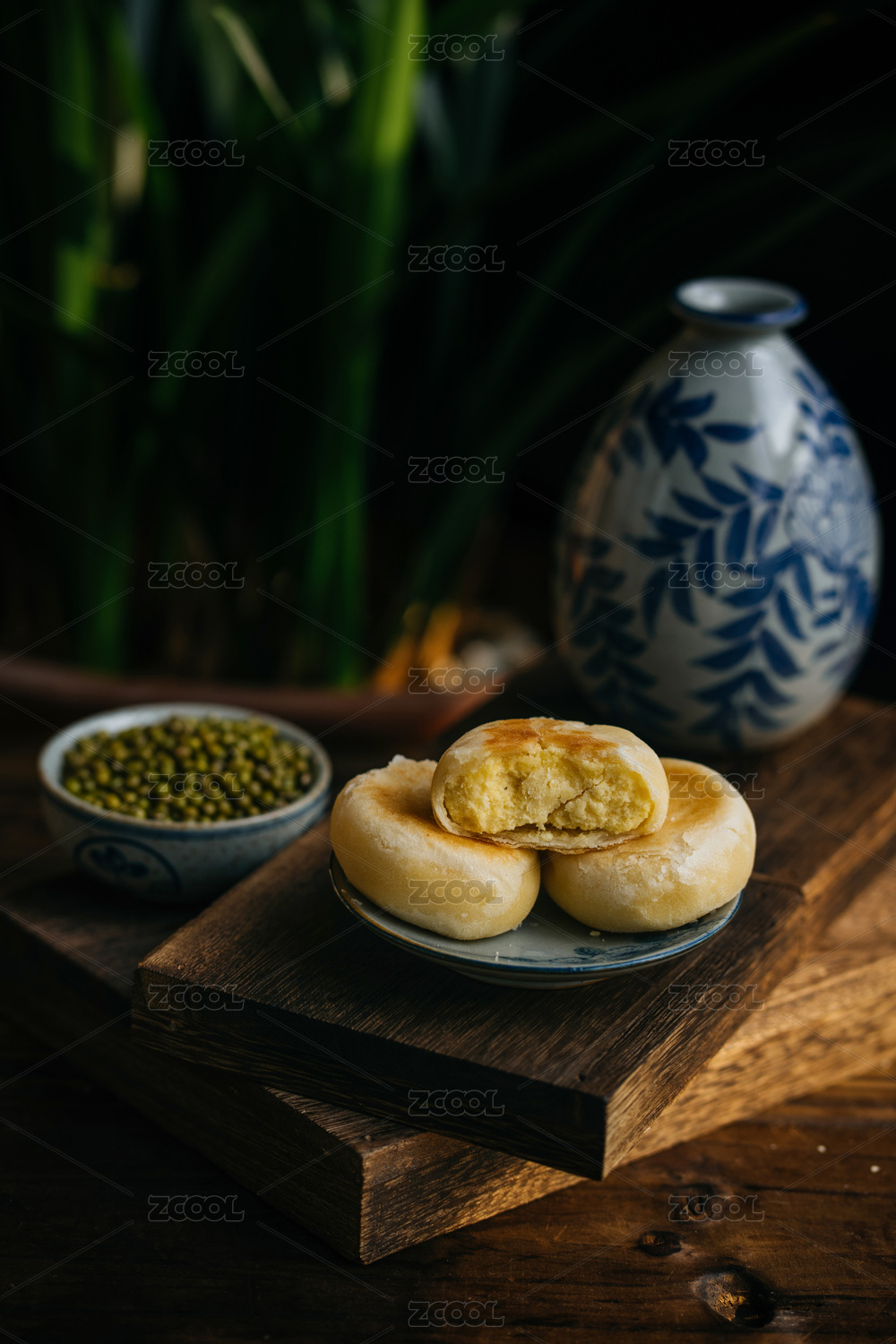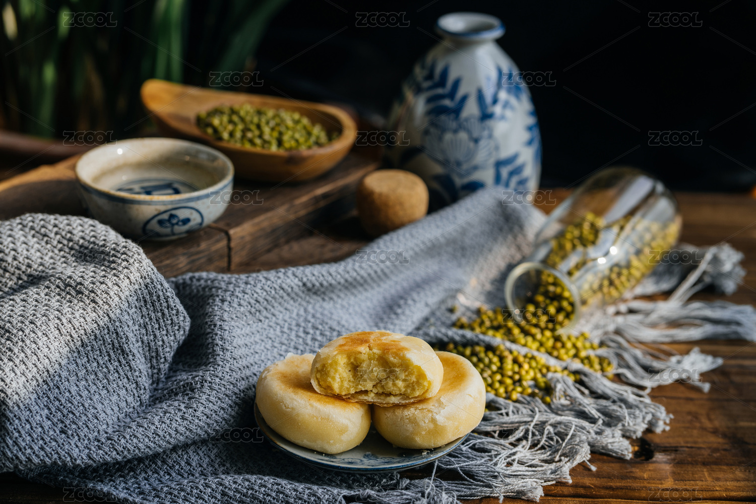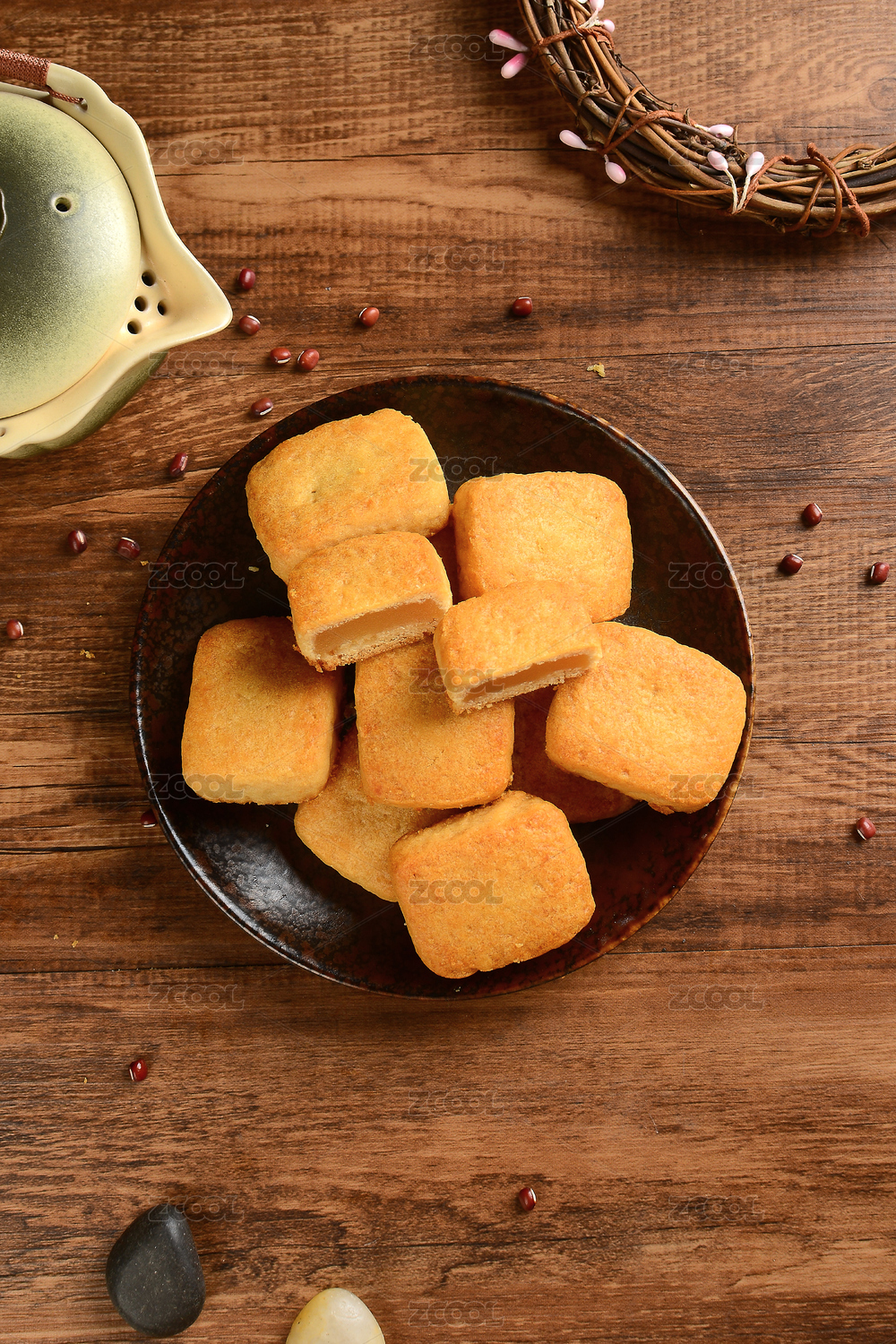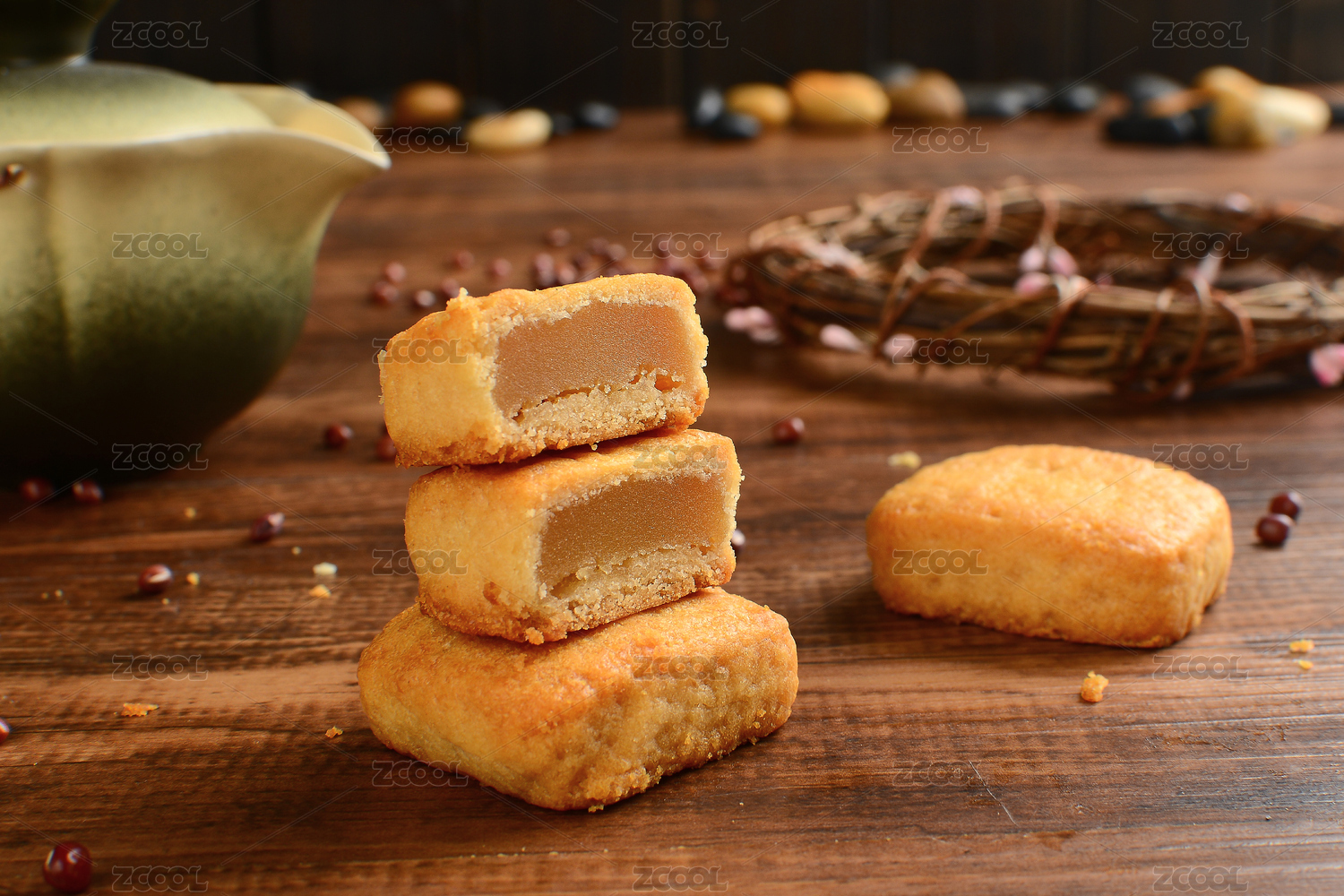 黄色背景前的绿豆酥