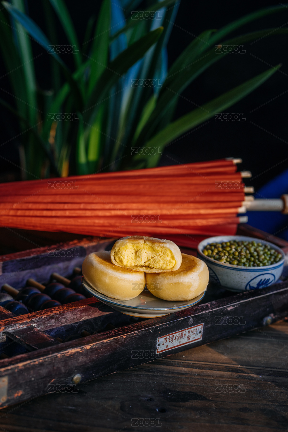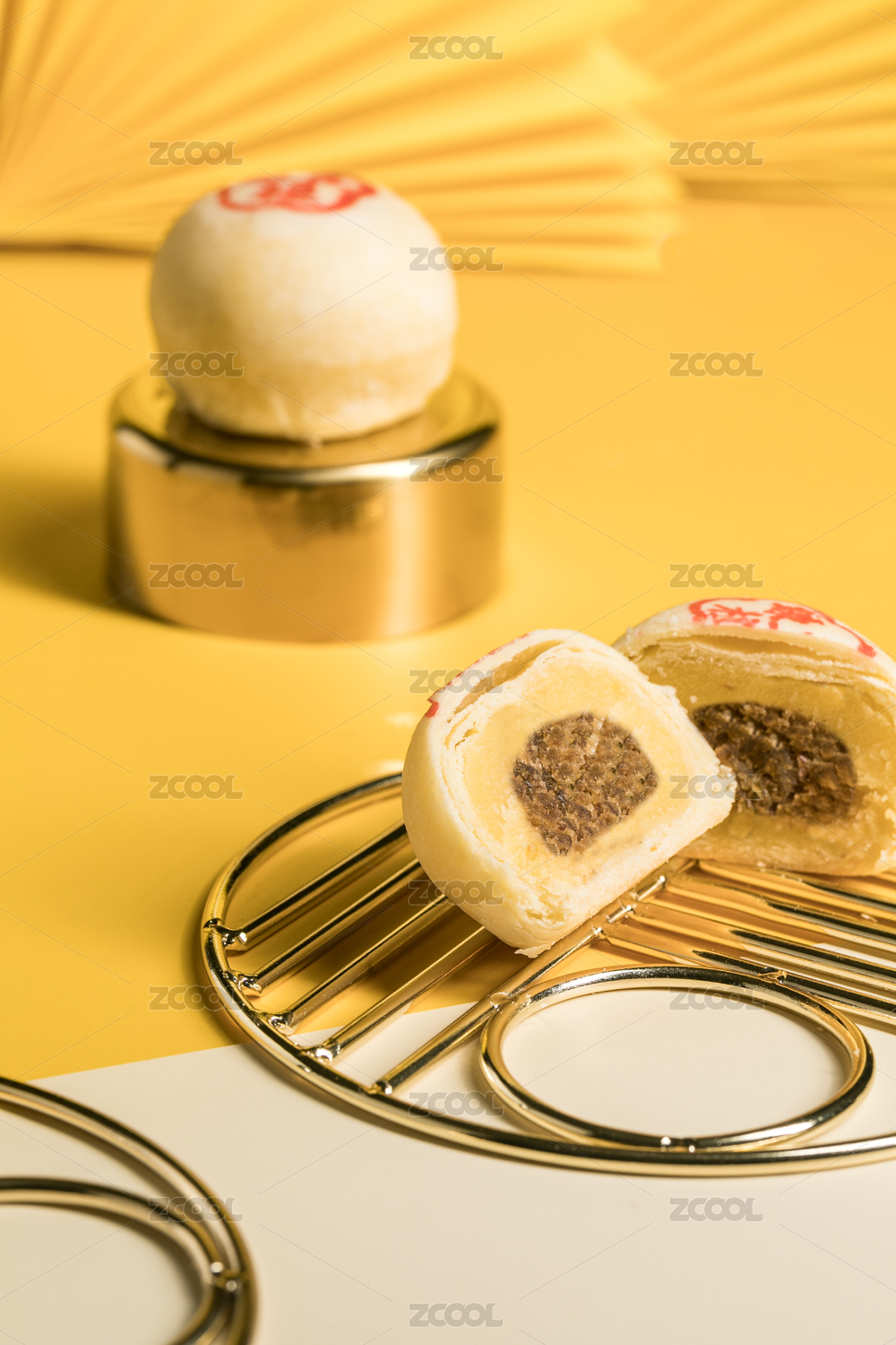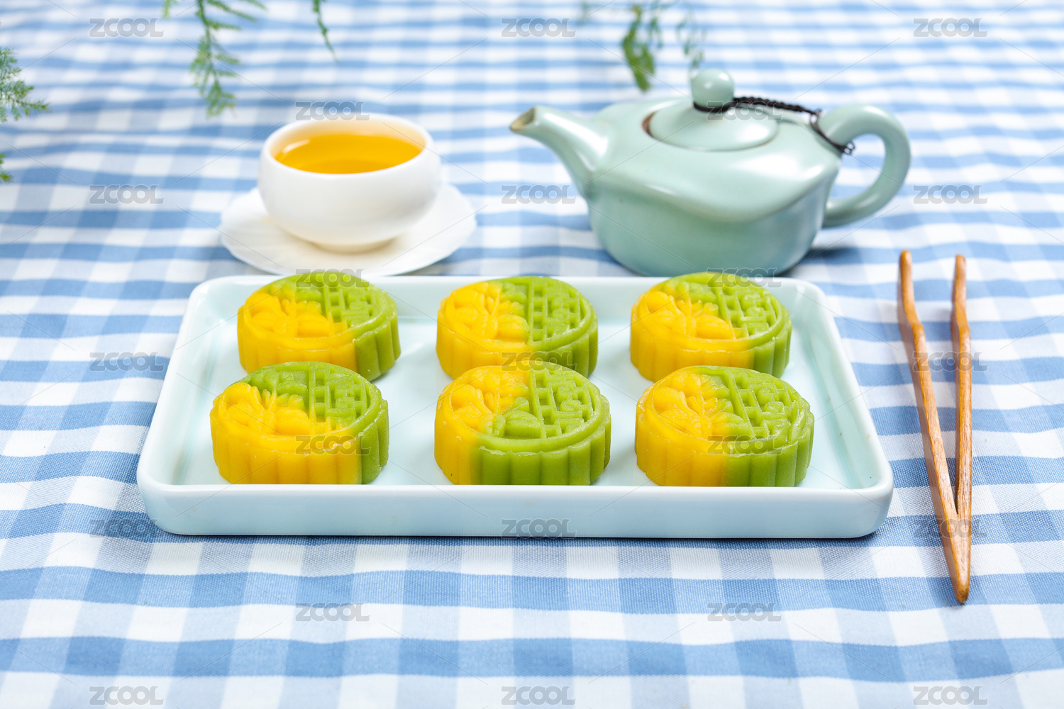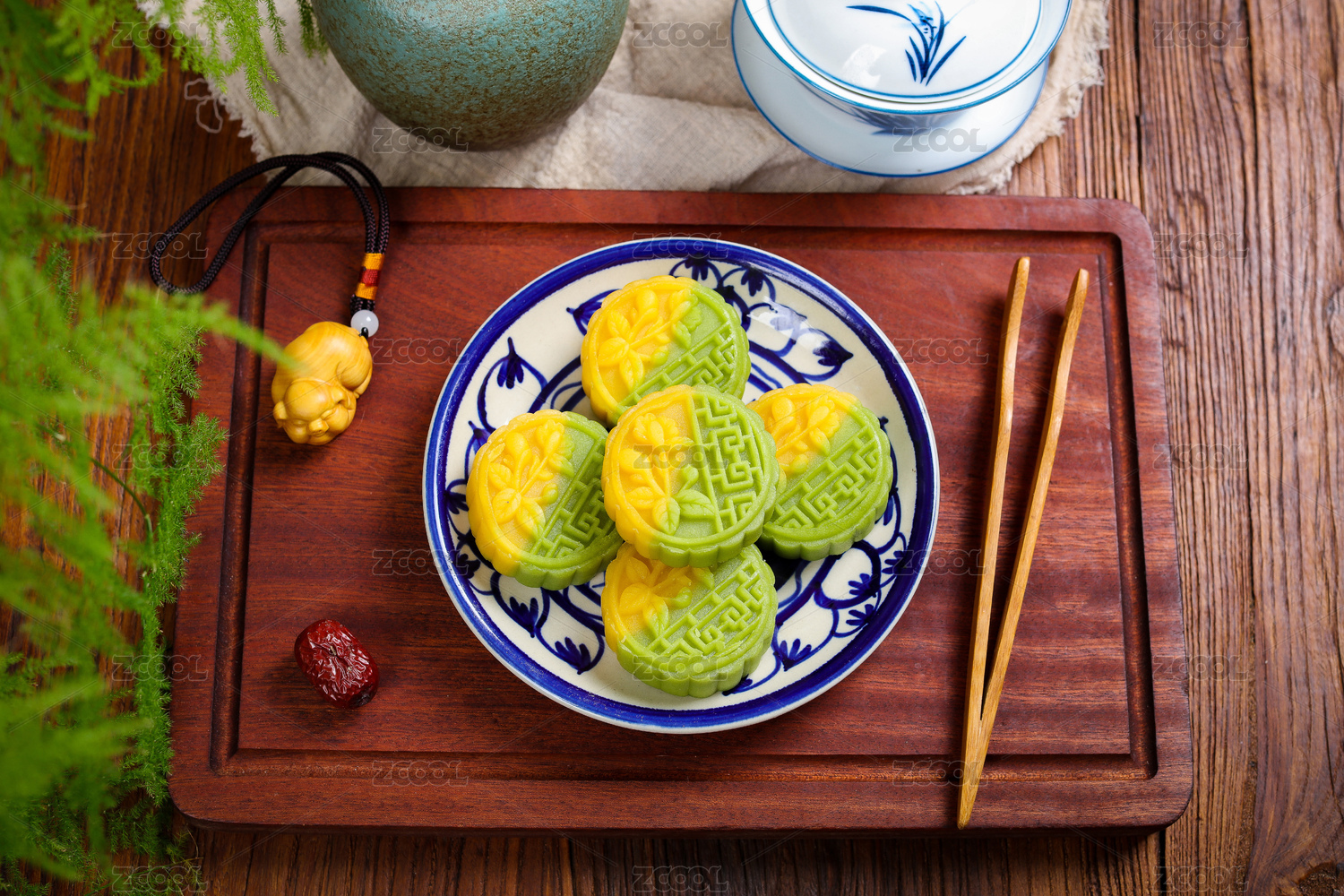 黄色背景前的绿豆酥