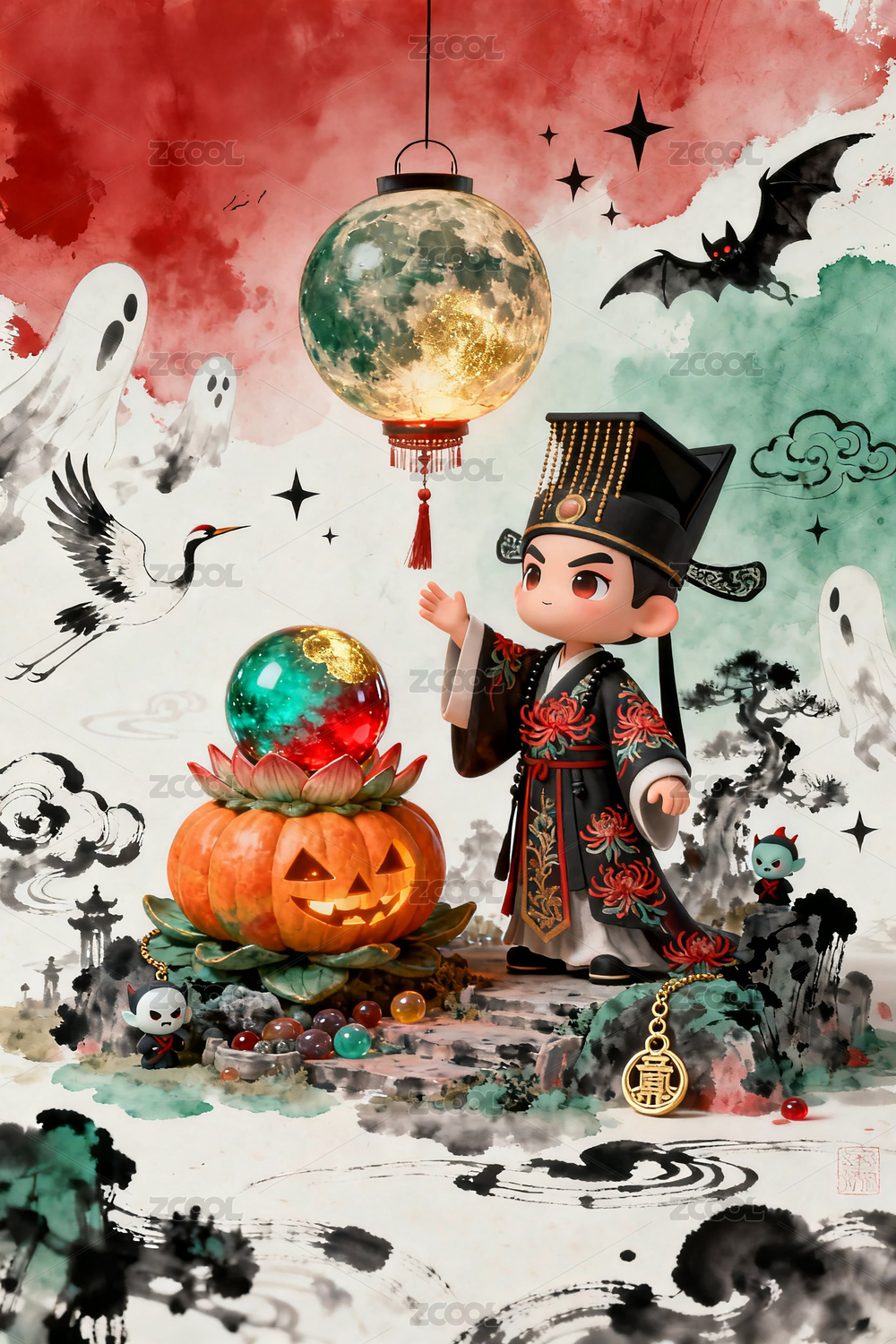 中国风万圣节奇幻官服人物插画