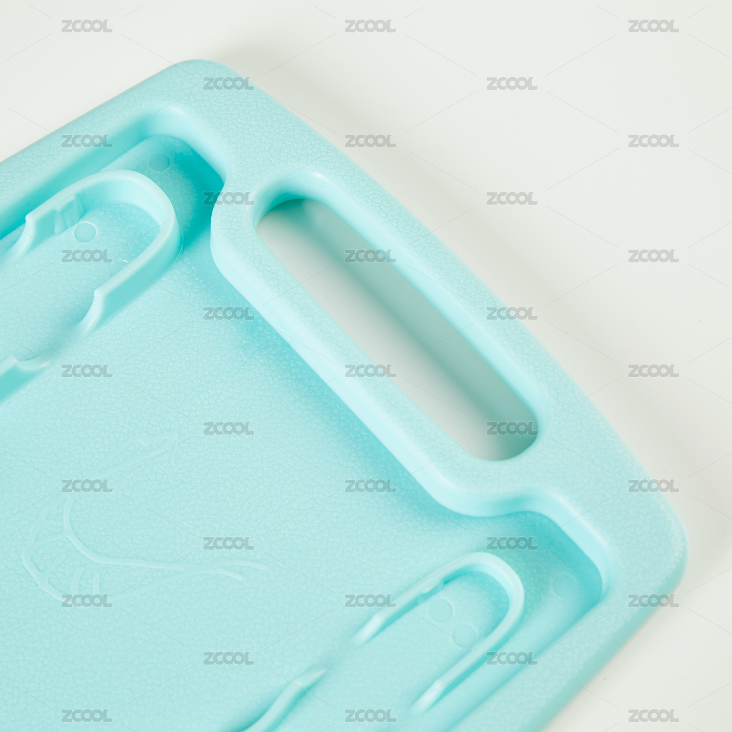 白色背景下切菜板上的筷子夹虾仁特写镜头