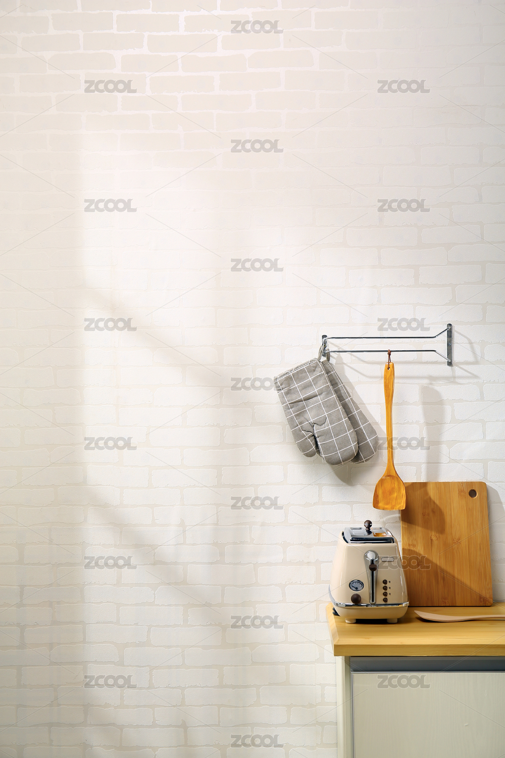 面包机和切菜板放在橱柜上,展示厨房的一角