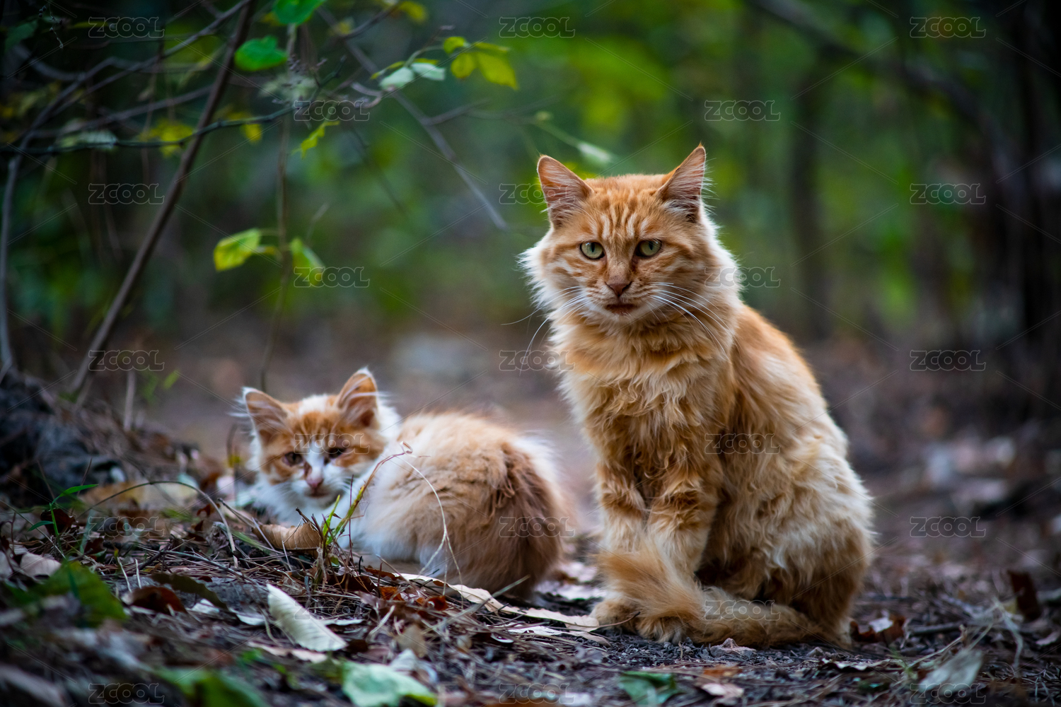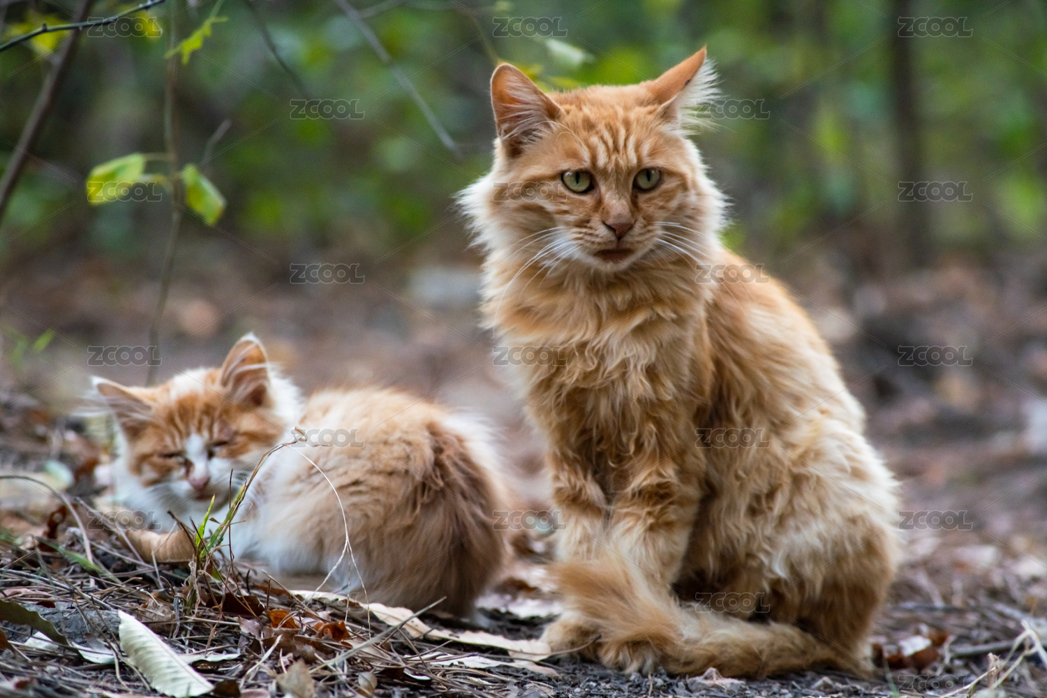 在森林休息的两只野猫
