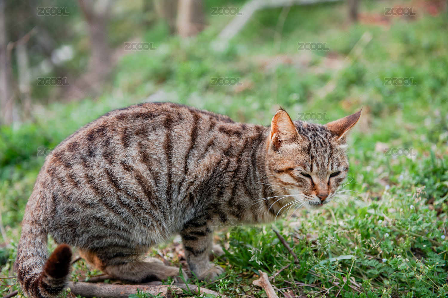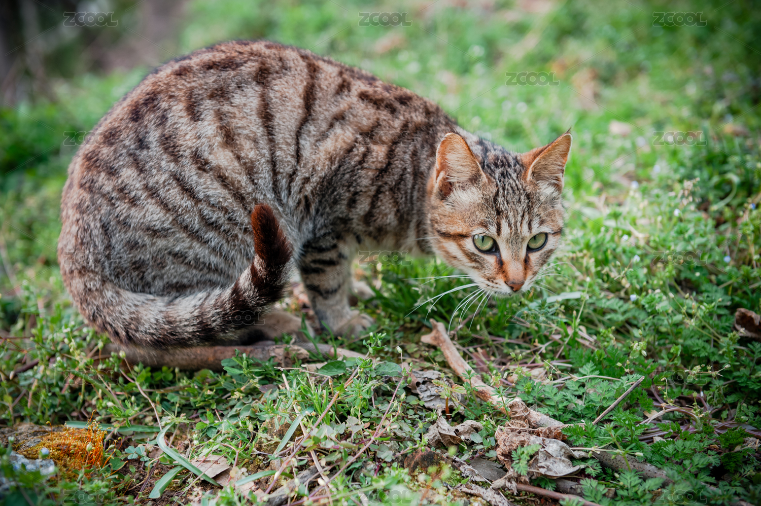 草地上的野猫特写