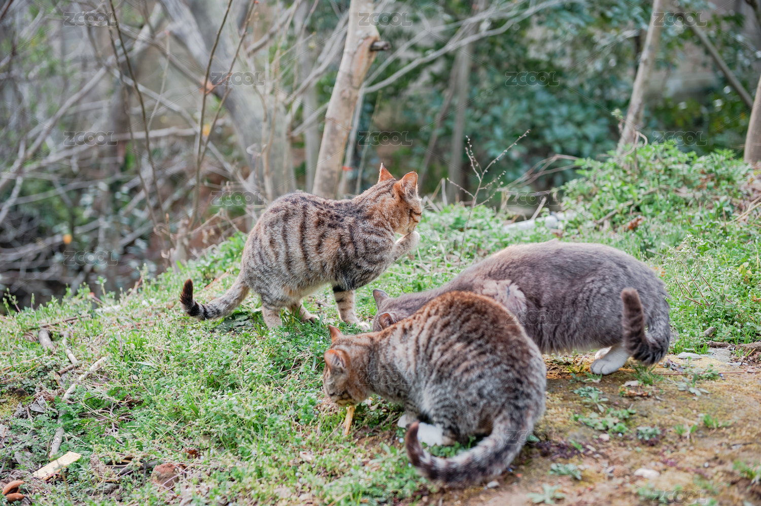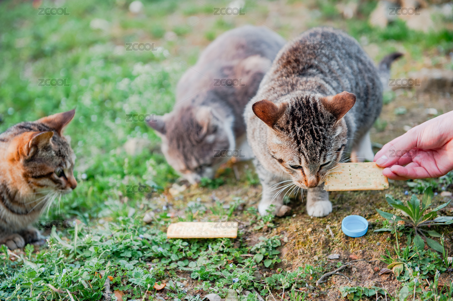 三只吃饼干的野猫
