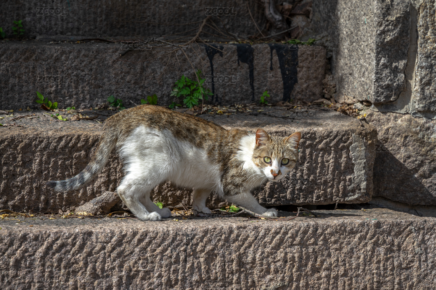阶梯上警觉的野猫