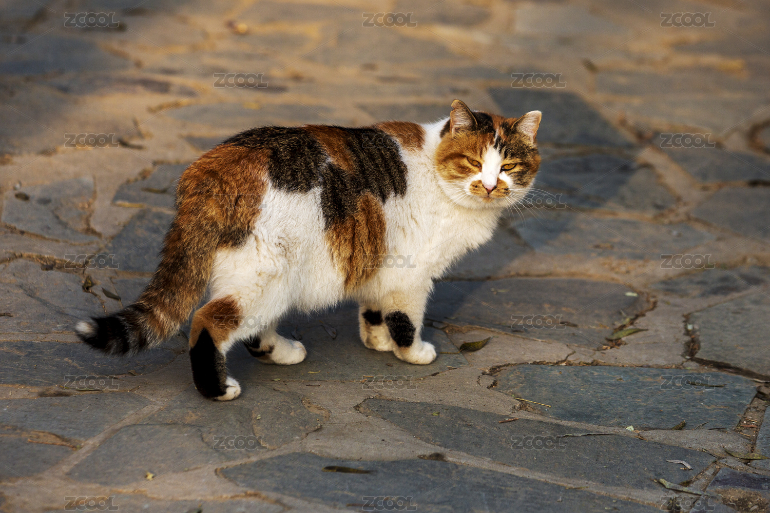 北京凤凰山景区内一只胖呼呼的黄黑野猫