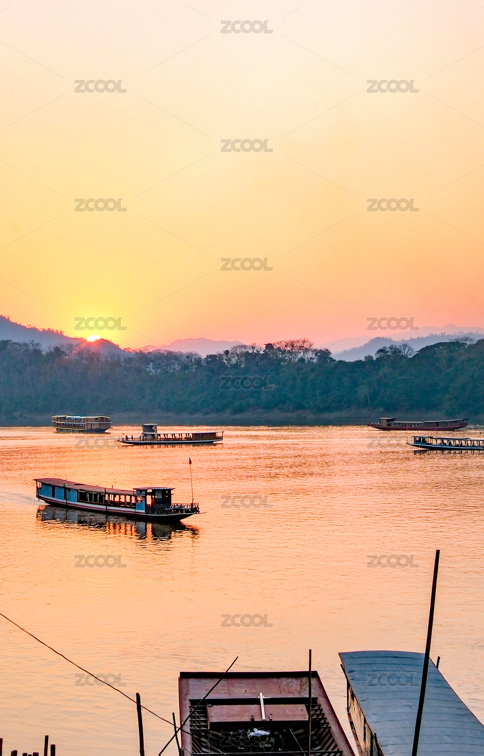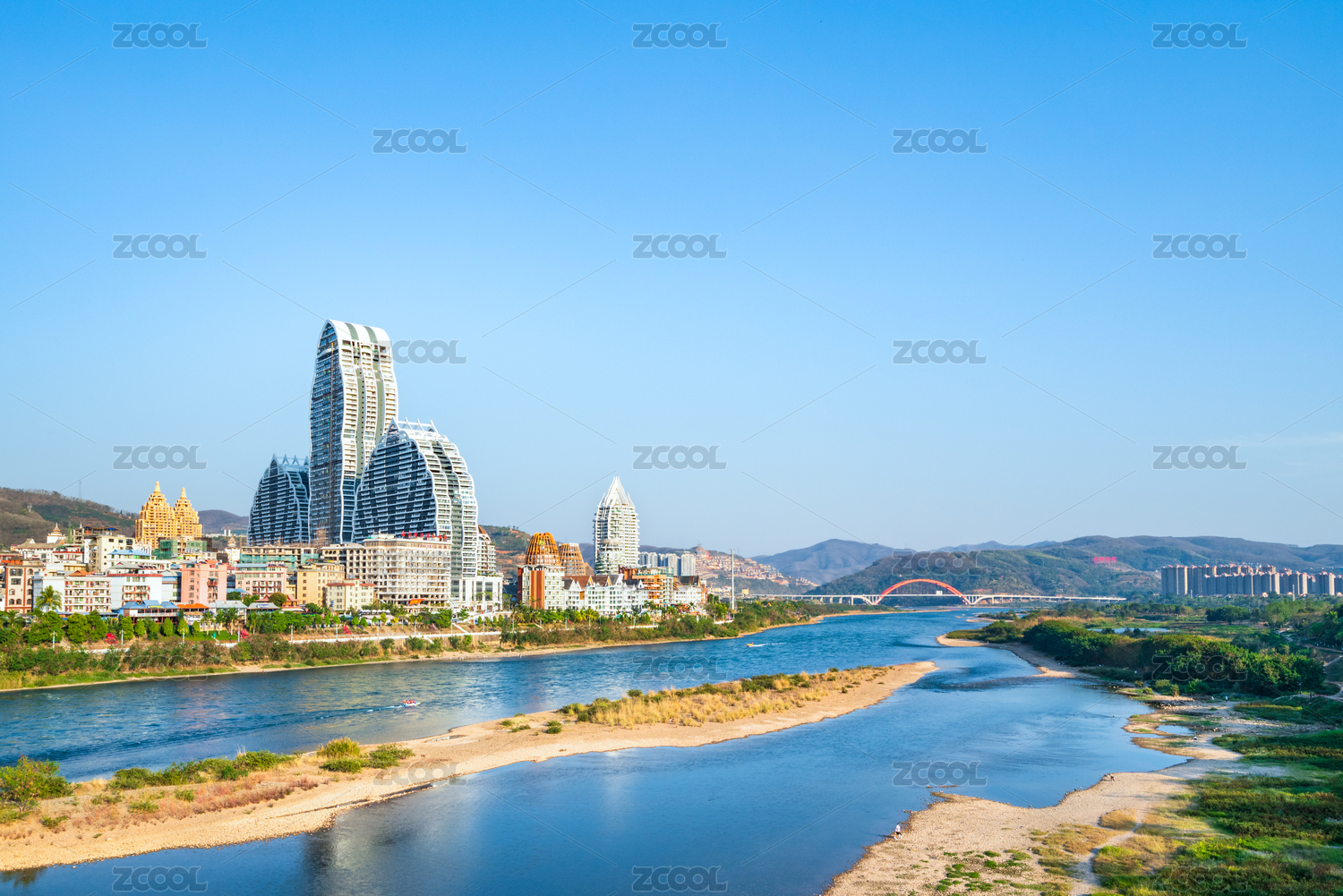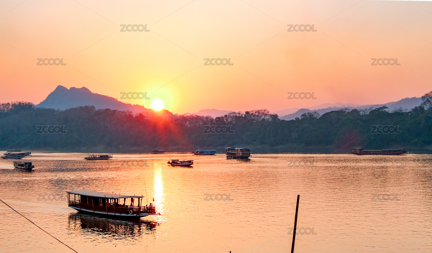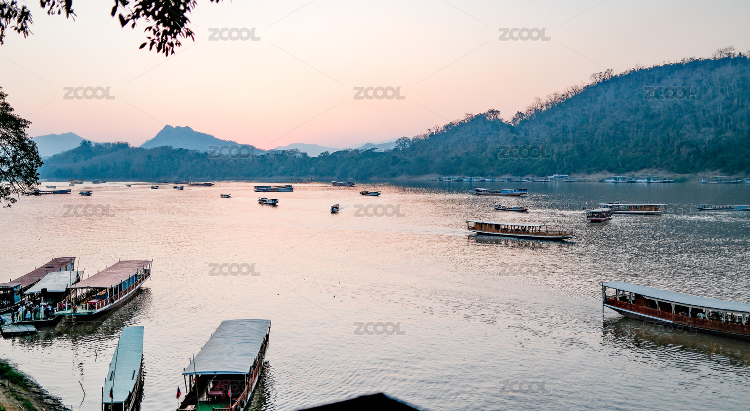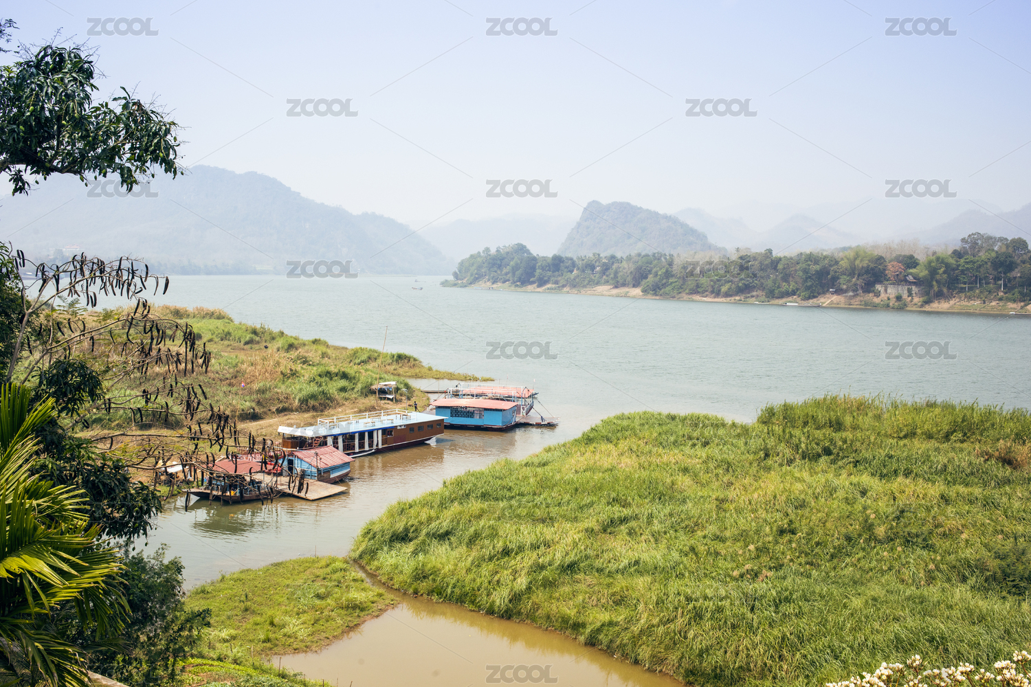 云南西双版纳景洪澜沧江湄公河航运航拍风光