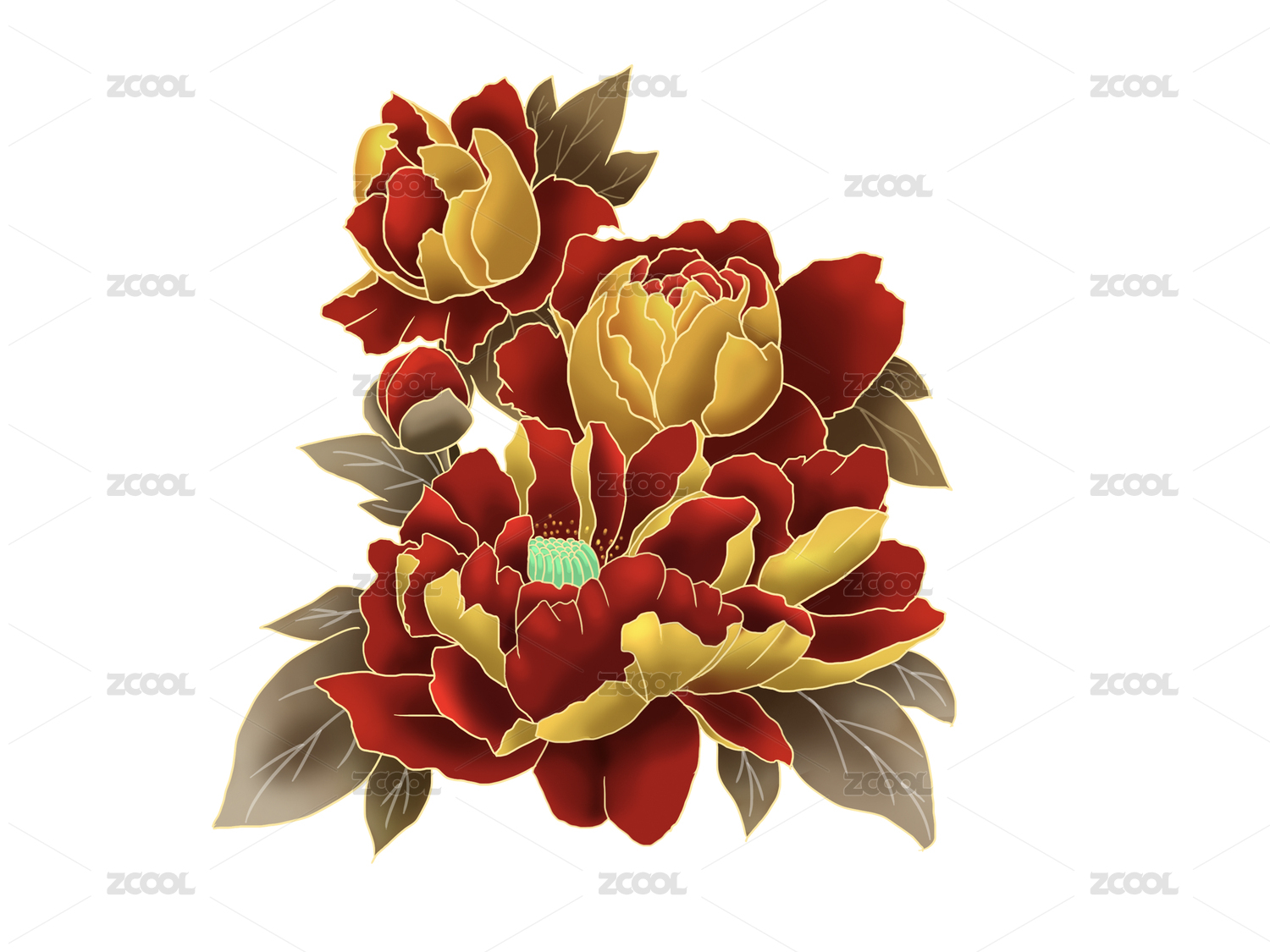 国风牡丹矢量插画素材花中之王牡丹花国画