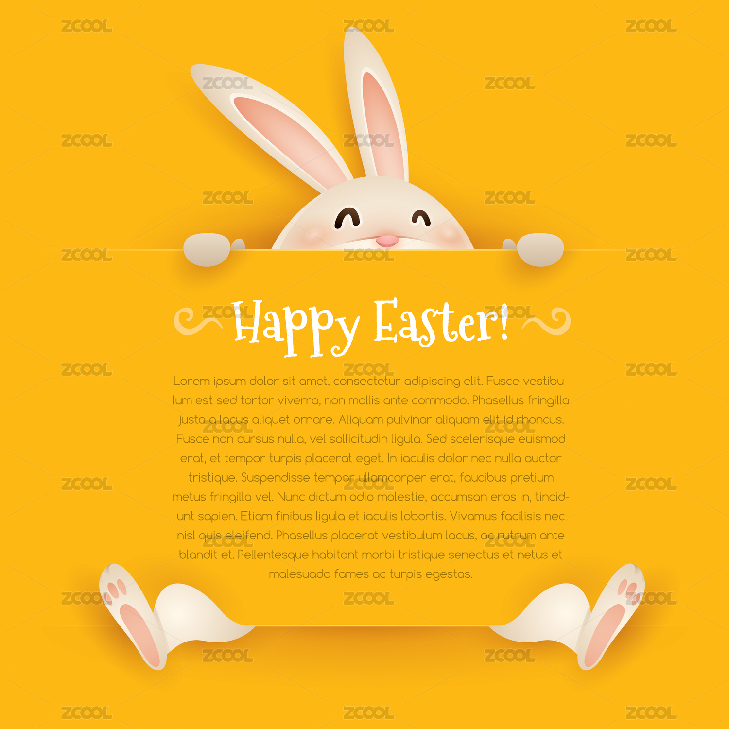 欢乐复活节可爱小白兔手拿小展板