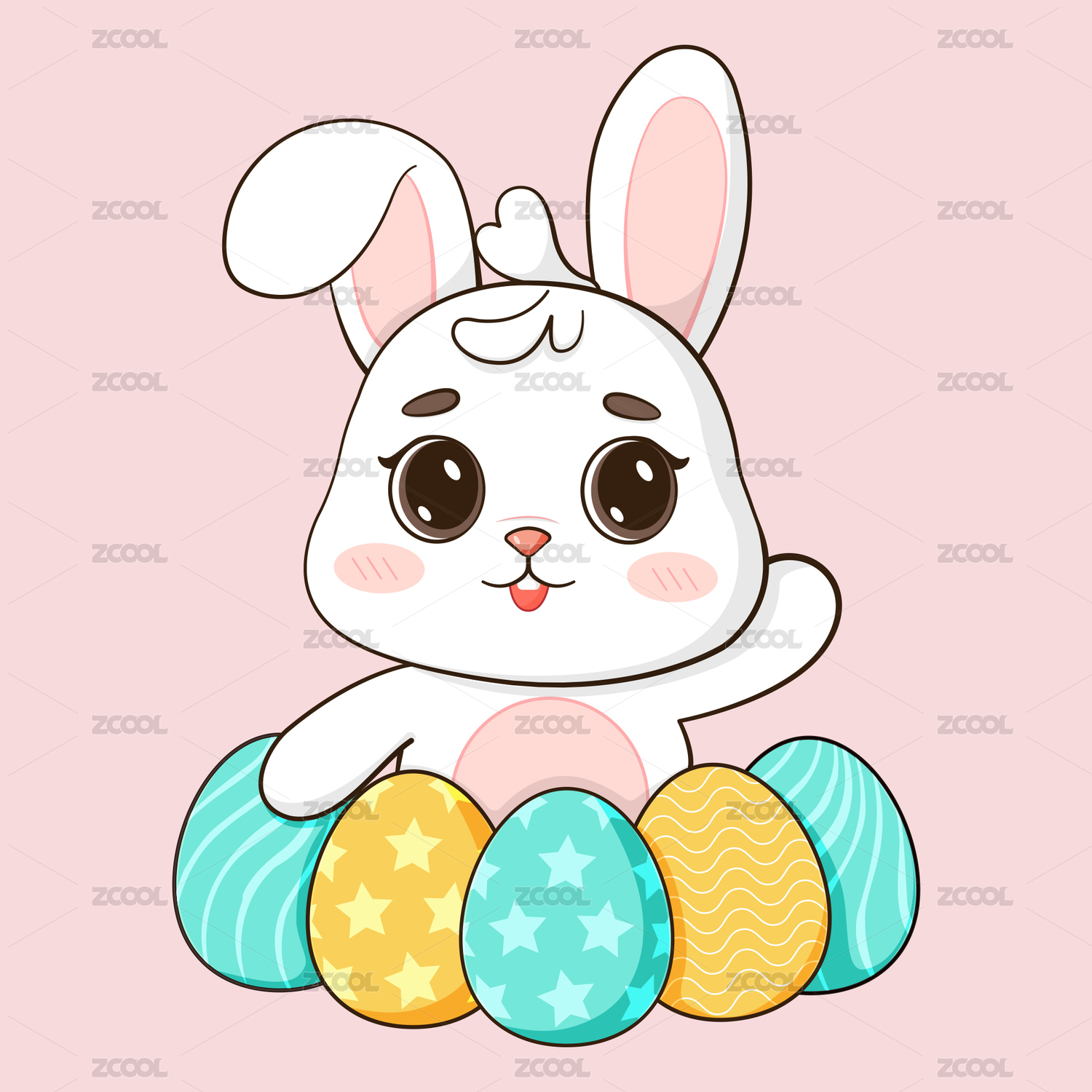 复活节兔子彩蛋围绕挥手卡通插画元素