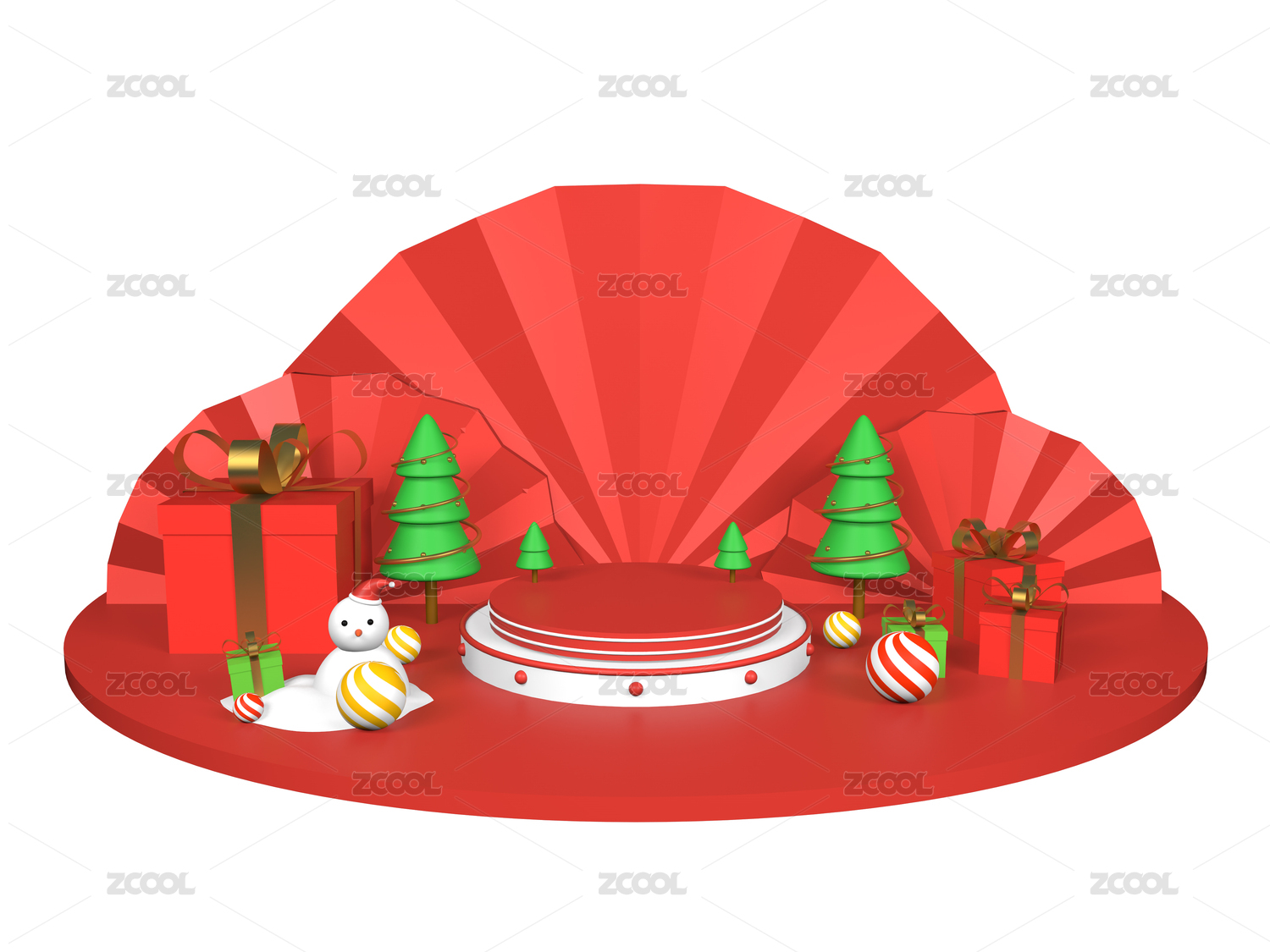 圣诞节圣诞树礼物盒电商场景主题舞台立体元素
