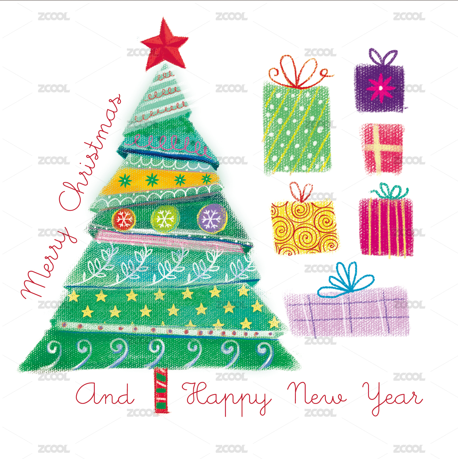 圣诞节礼物圣诞树手绘肌理插画