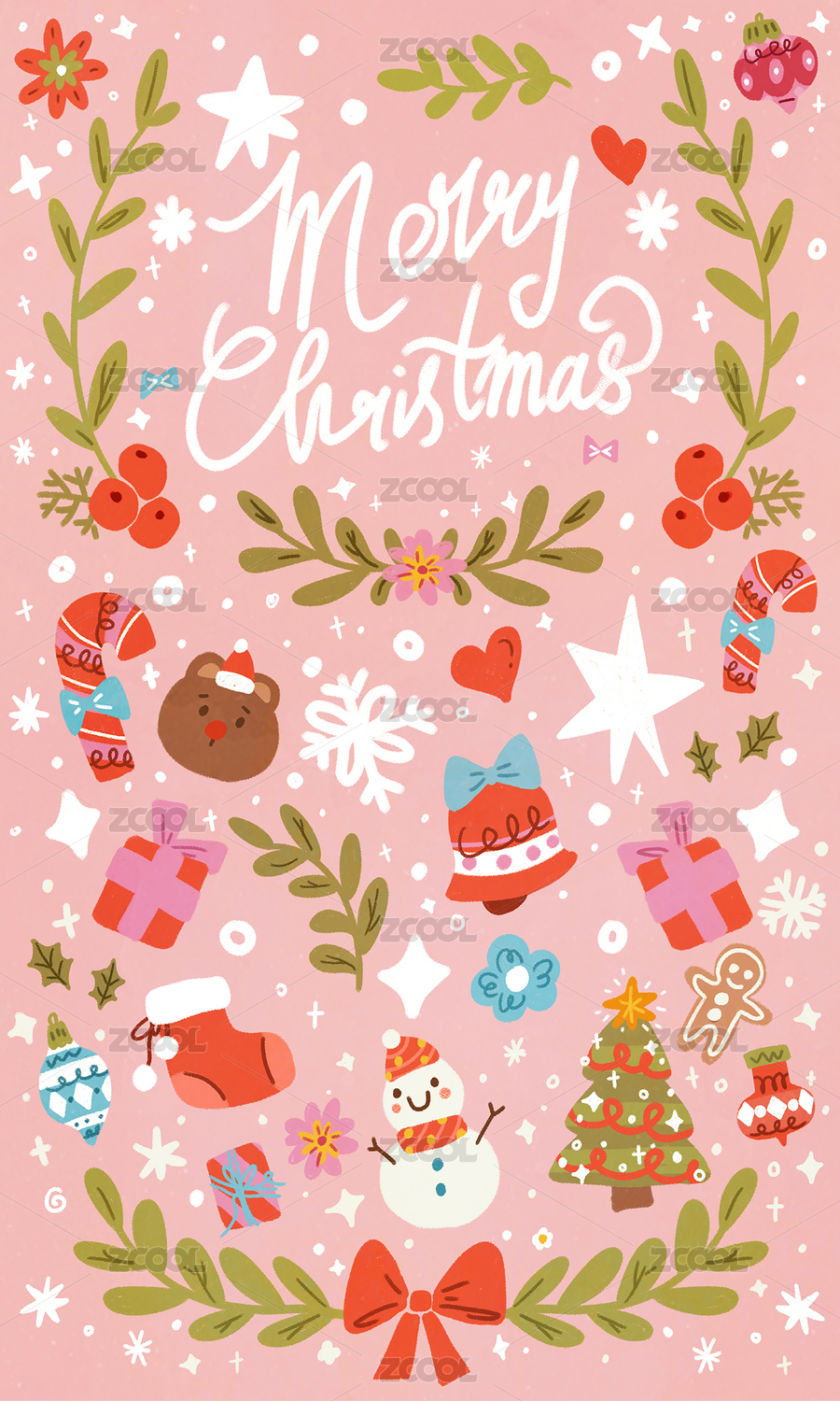 圣诞元素手绘水彩插画