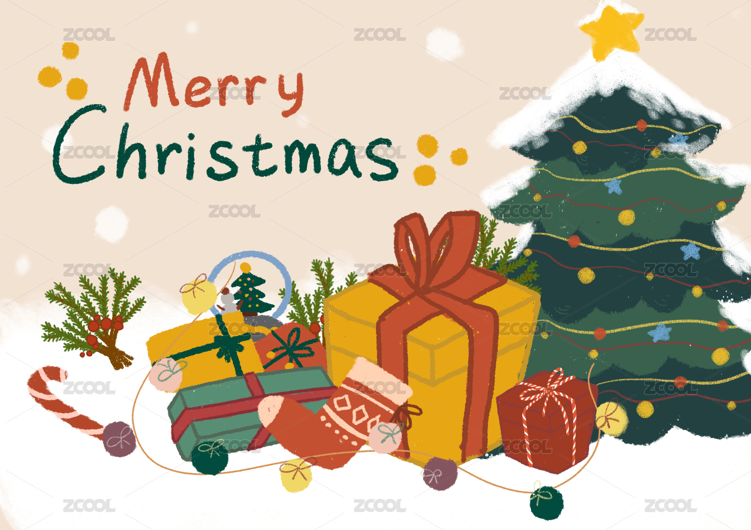 手绘卡通圣诞节插画