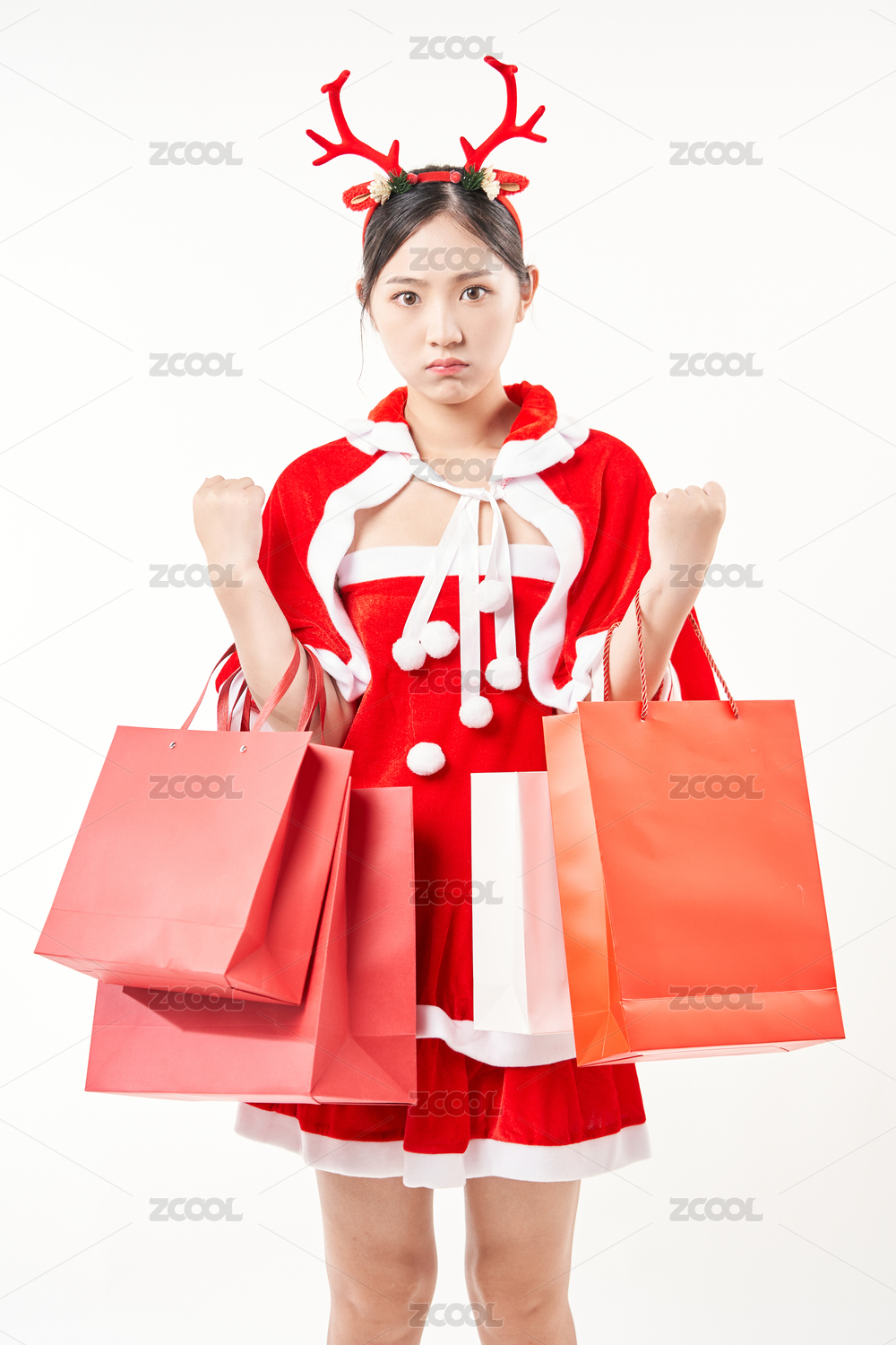 手拿购物袋的圣诞女孩