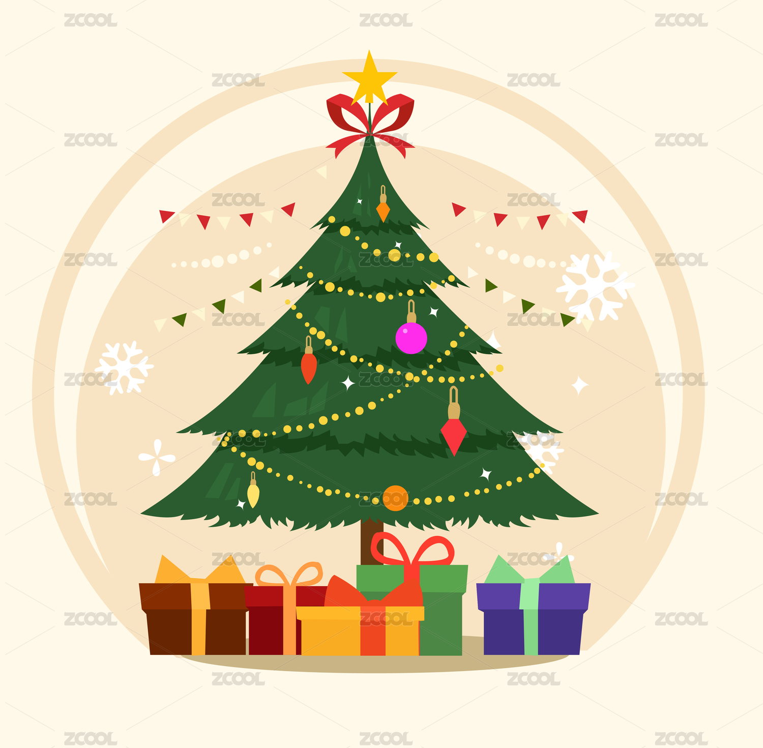 圣诞屋圣诞树 | 精选圣诞矢量素材