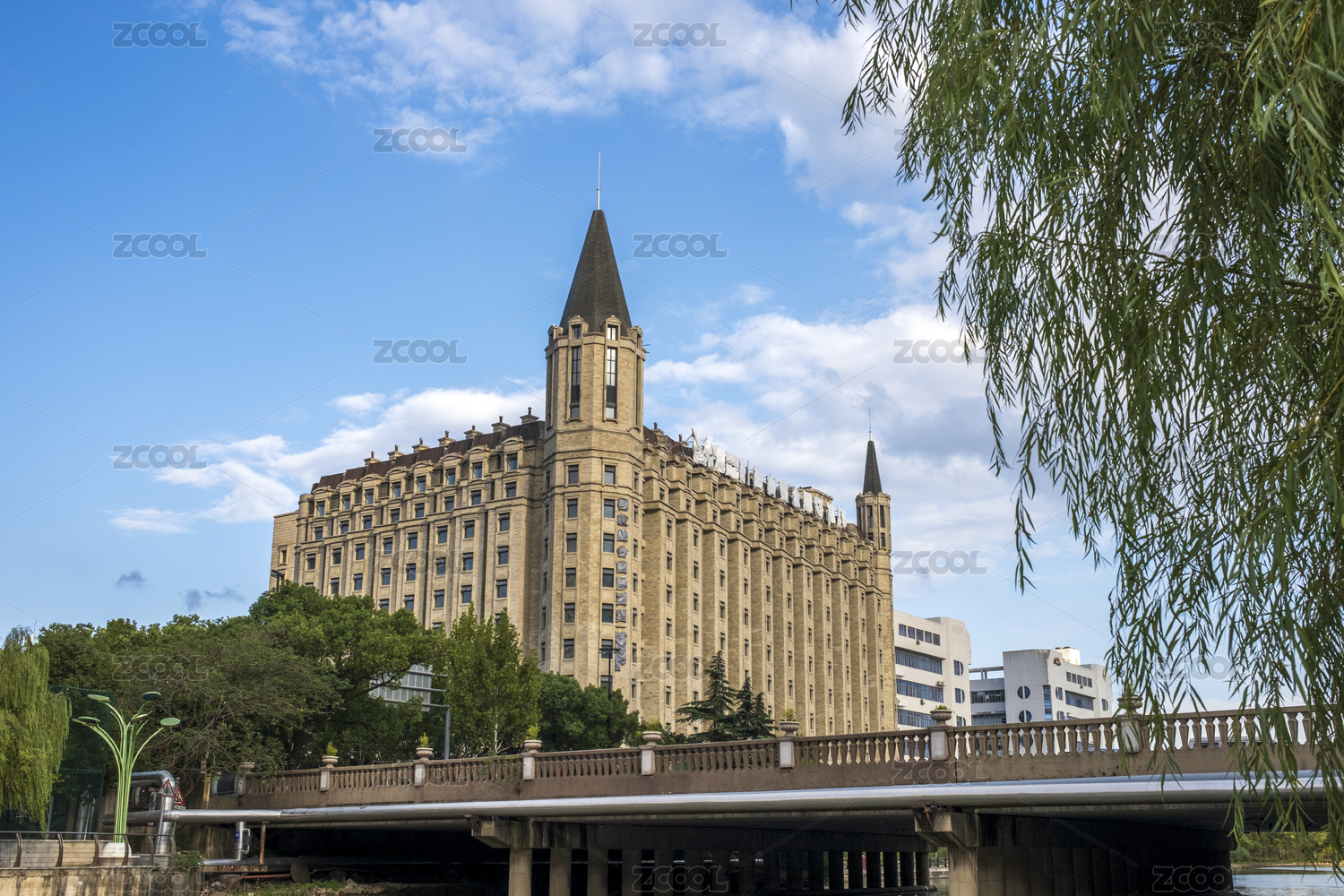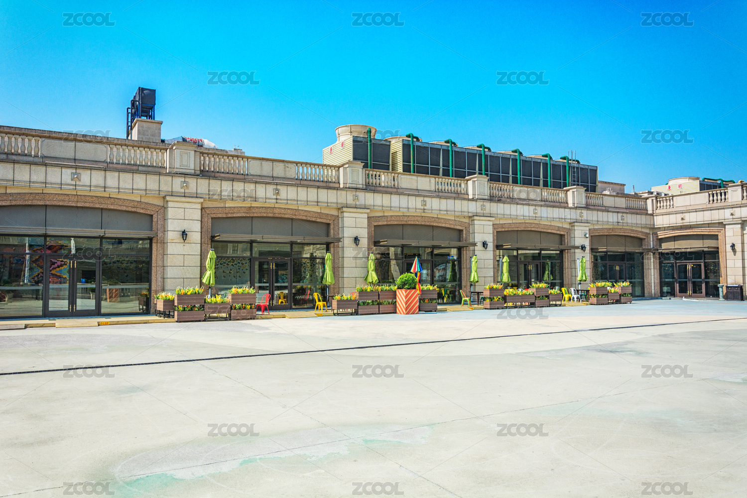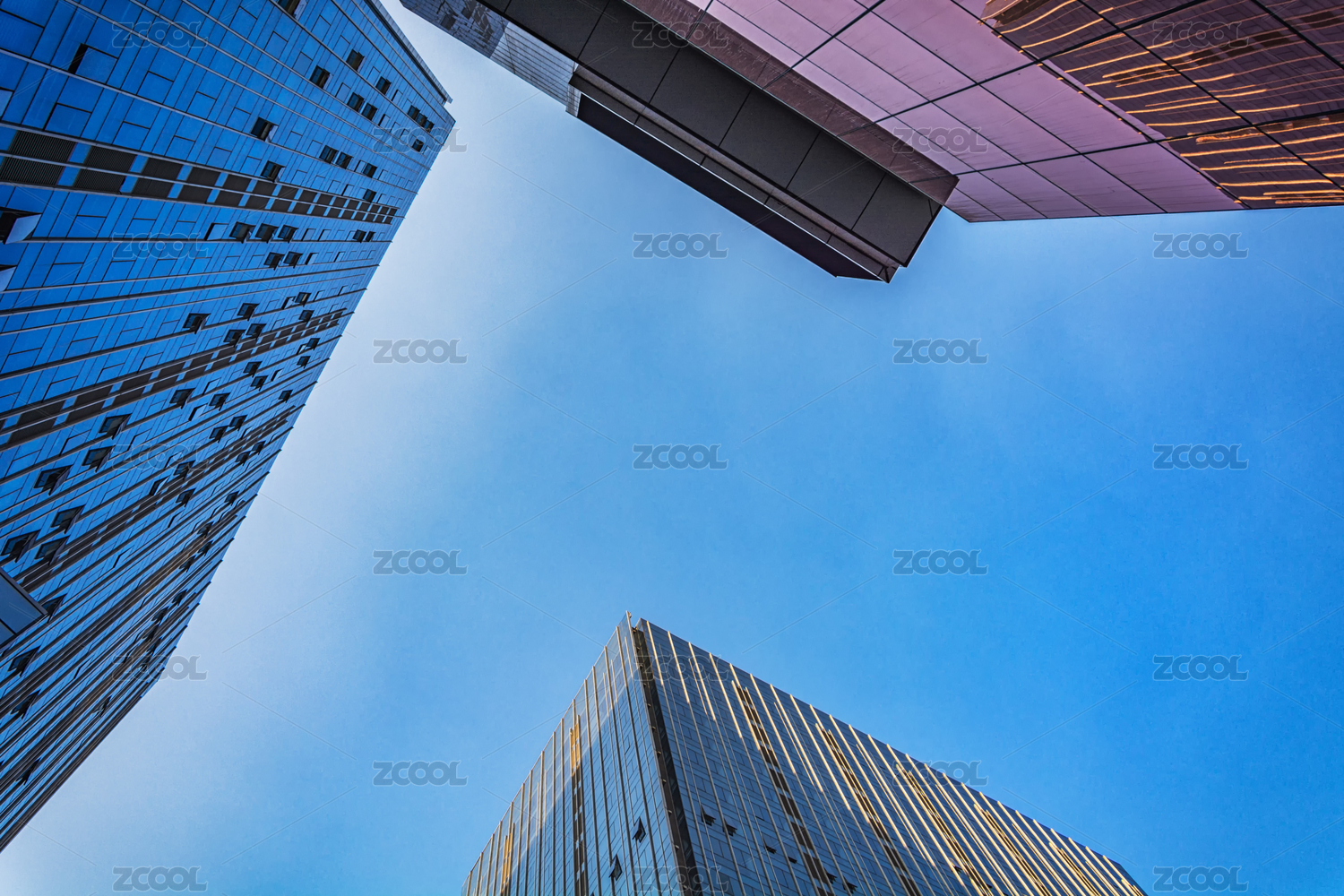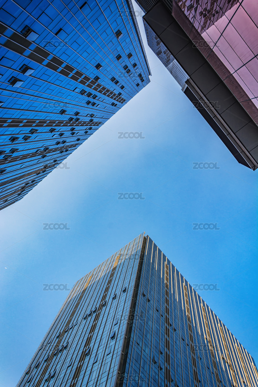 蓝天白云下建设中的城市天际线建筑大厦风光