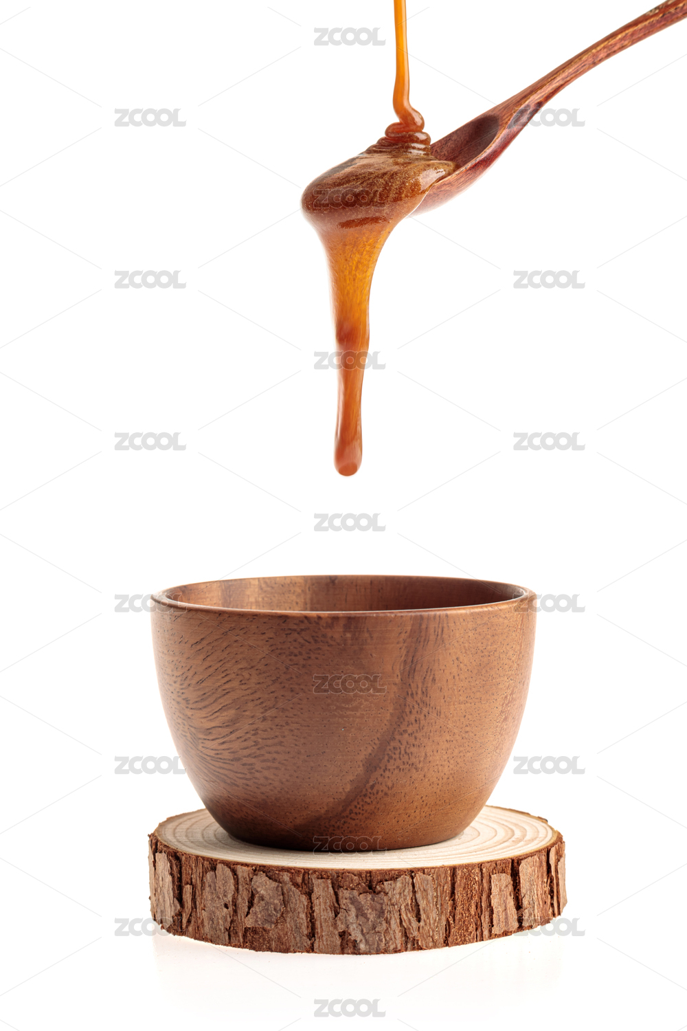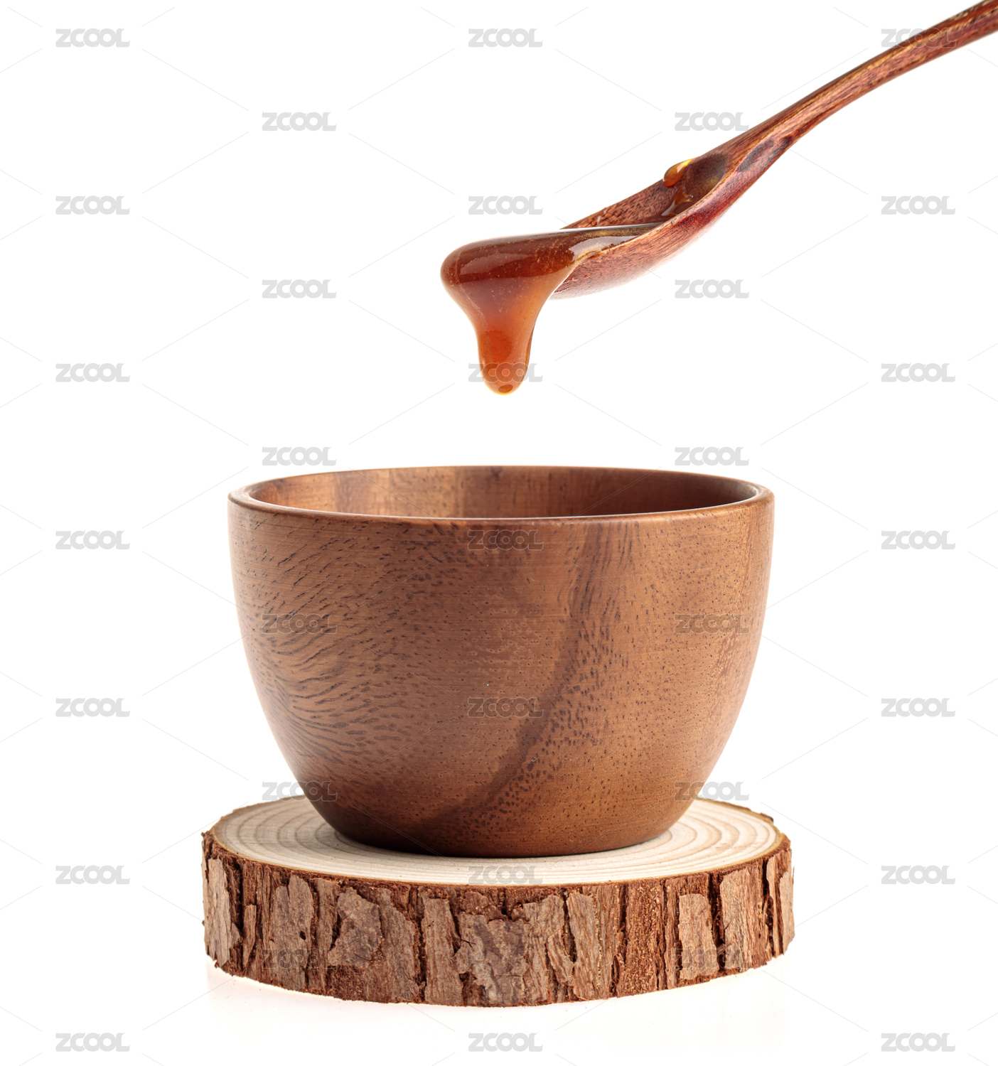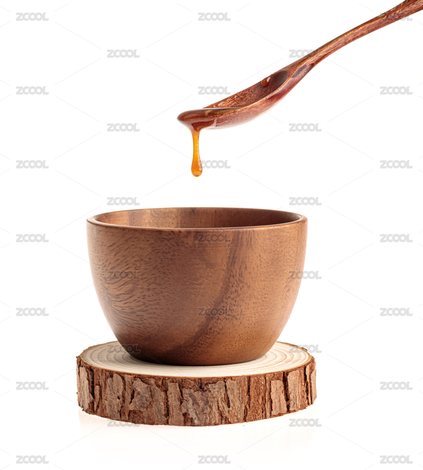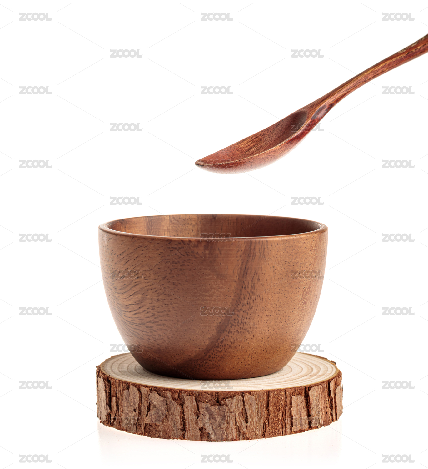 室内白色背景上的木碗木勺