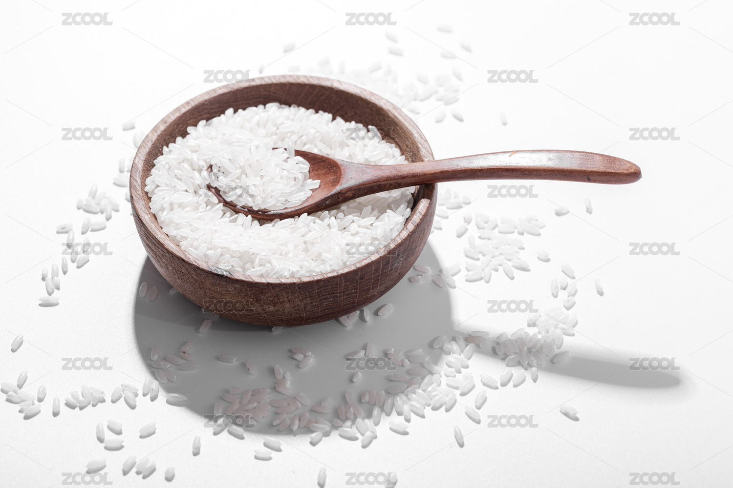 木碗里有一些大米和木勺