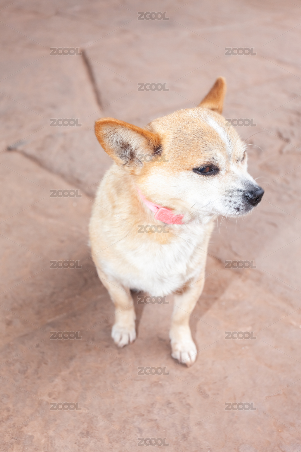 石板上一只有犀利眼神的黄毛小狗