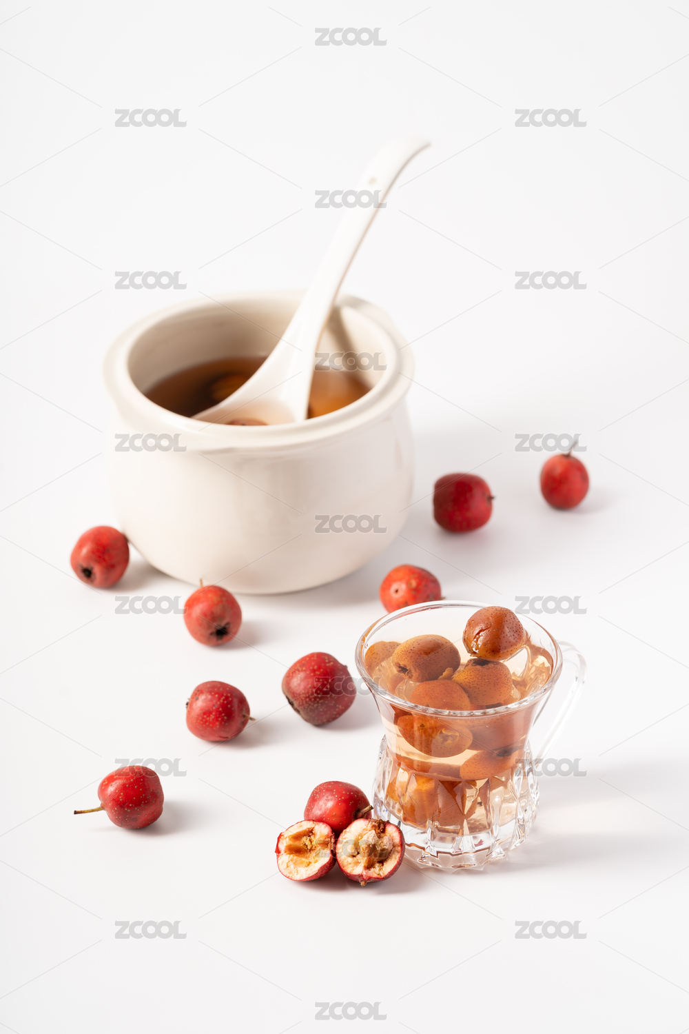 纯白色背景下的新鲜山楂汁