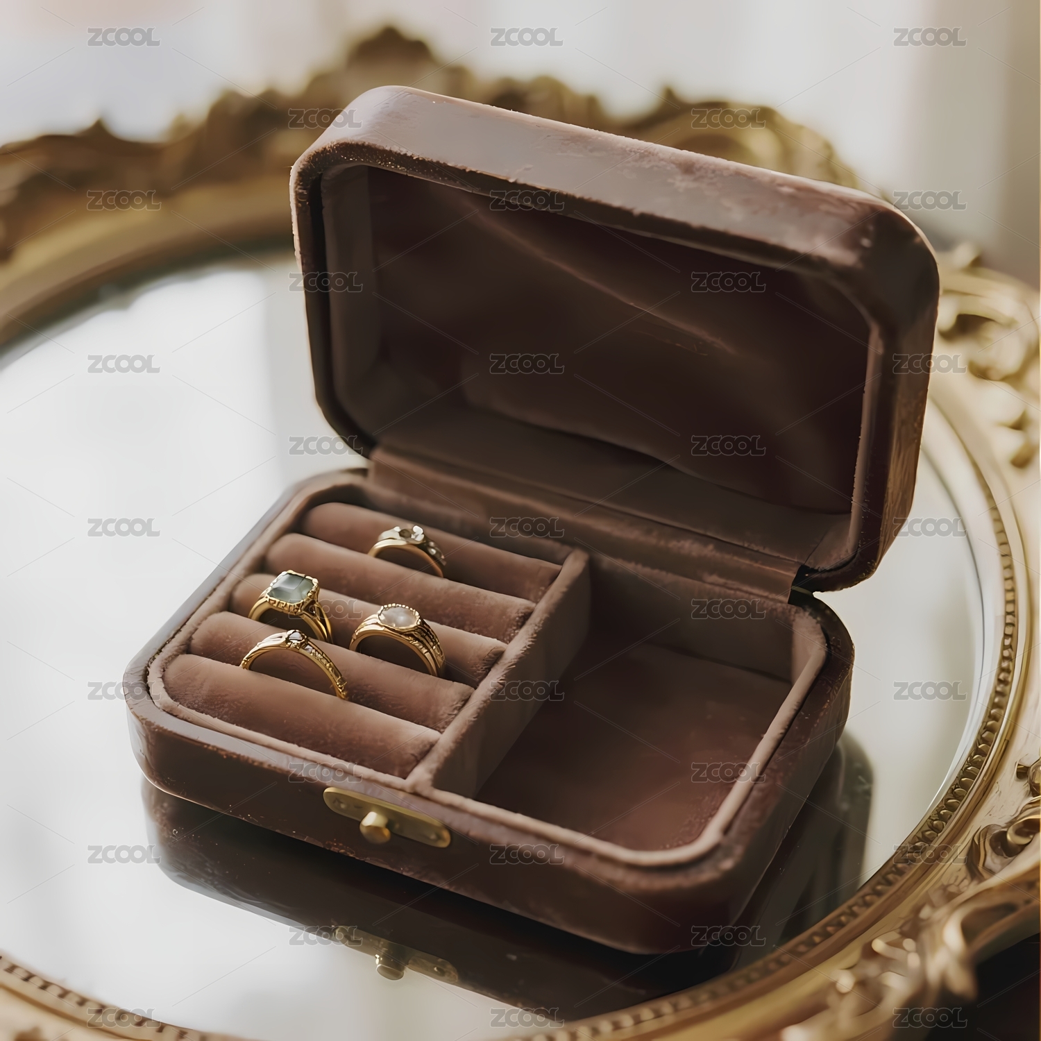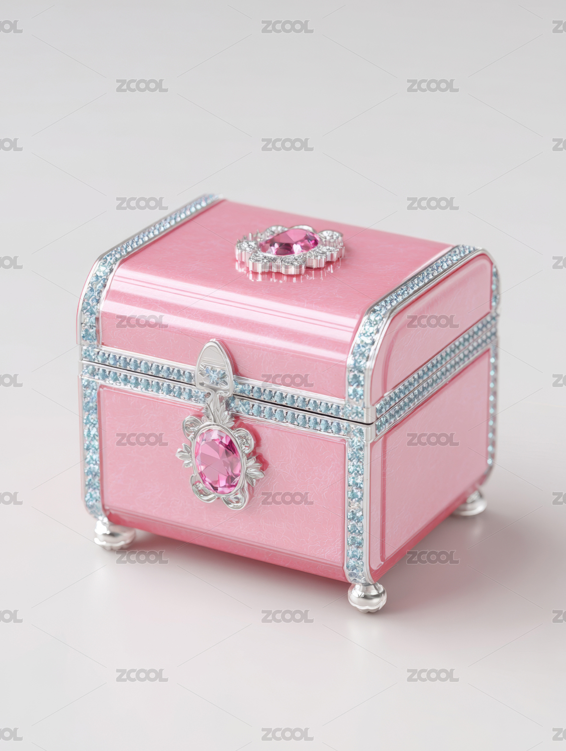 3D渲染情人节题材心形粉色首饰盒和钻石铂