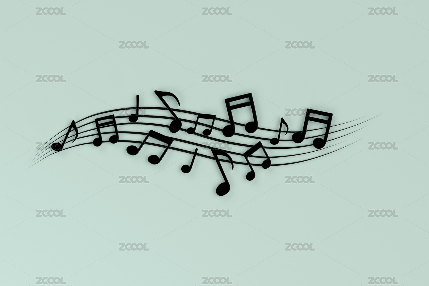 3D渲染的五线谱音符