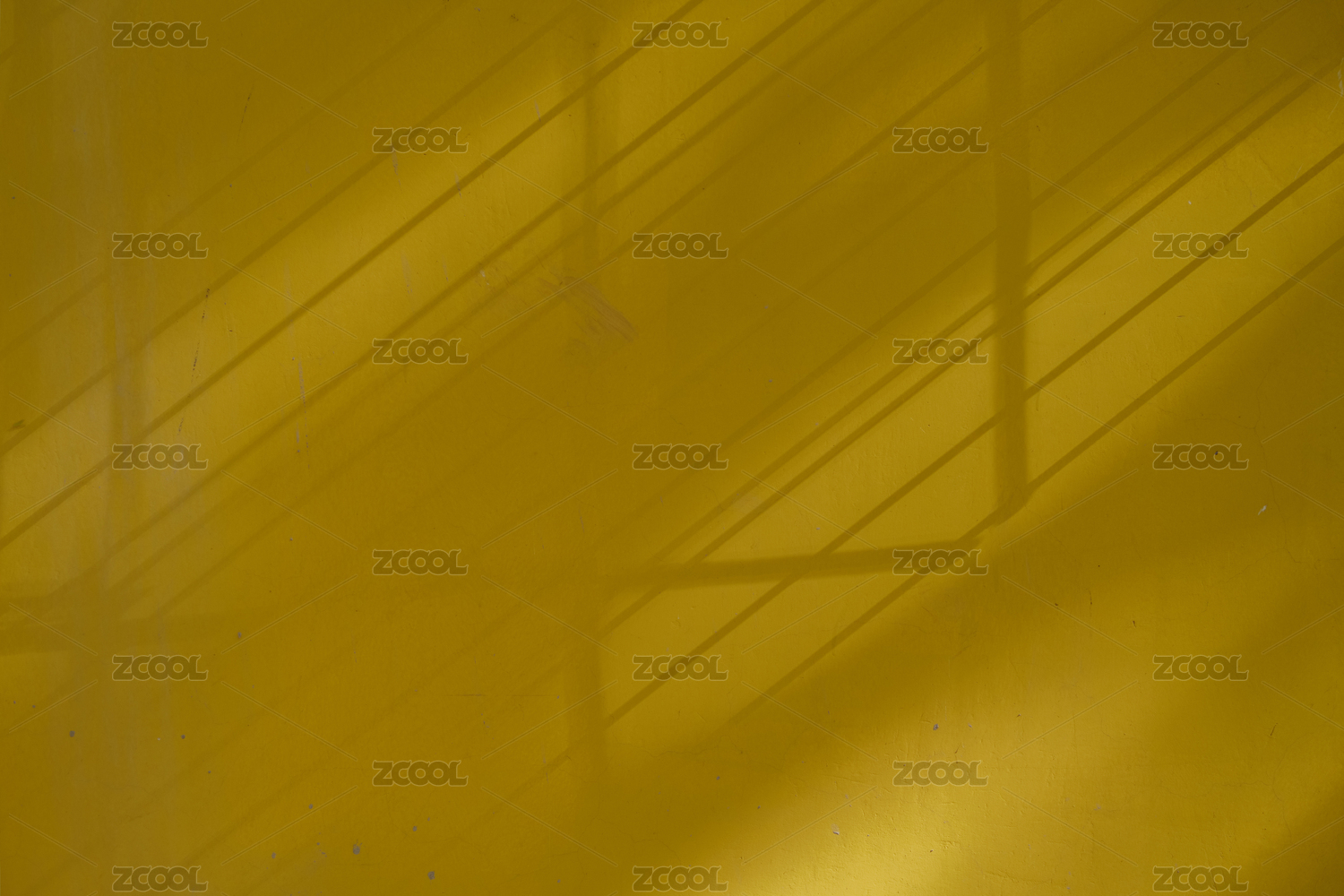 阳光透过栅栏照射到黄色建筑外墙上形成类似五线谱的影子