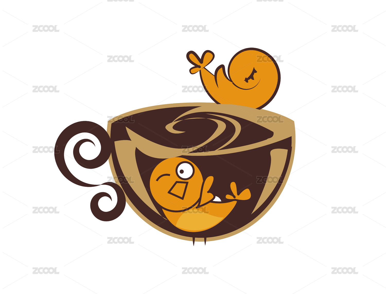 两只鸟儿在咖啡杯上嬉戏的矢量图形