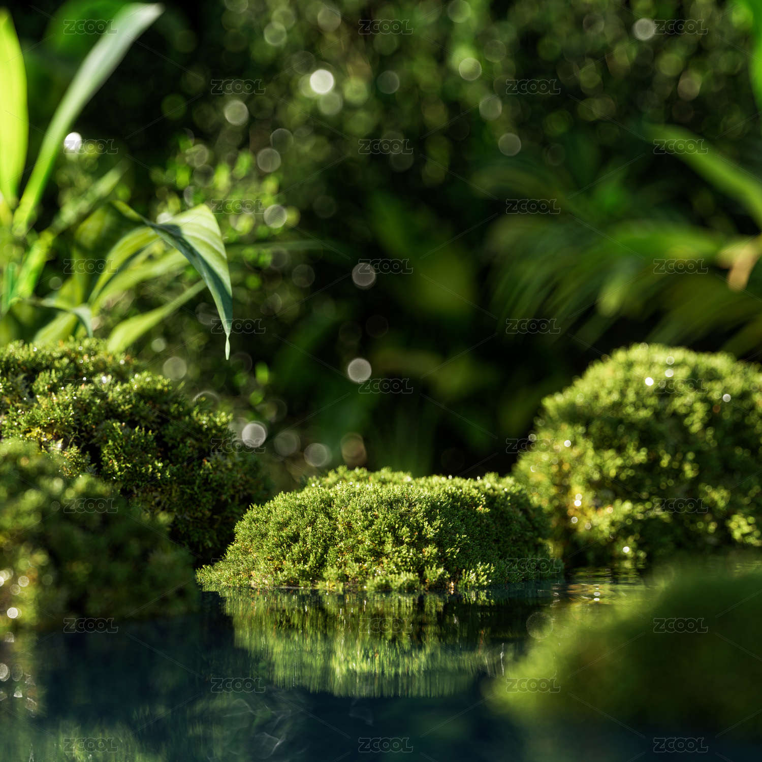 自然清新苔藓植物活动kv产品海报渲染背景