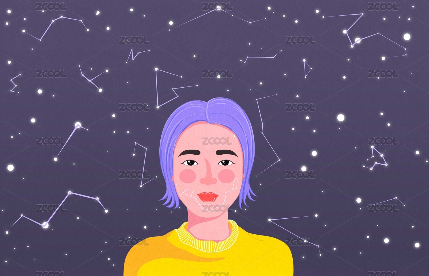 女孩想碰却不敢碰自己长痘的脸卡通漫画插画