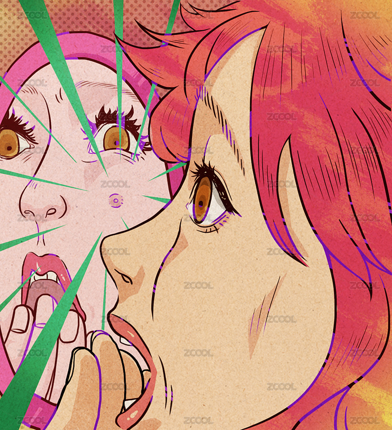女孩想碰却不敢碰自己长痘的脸 卡通插画