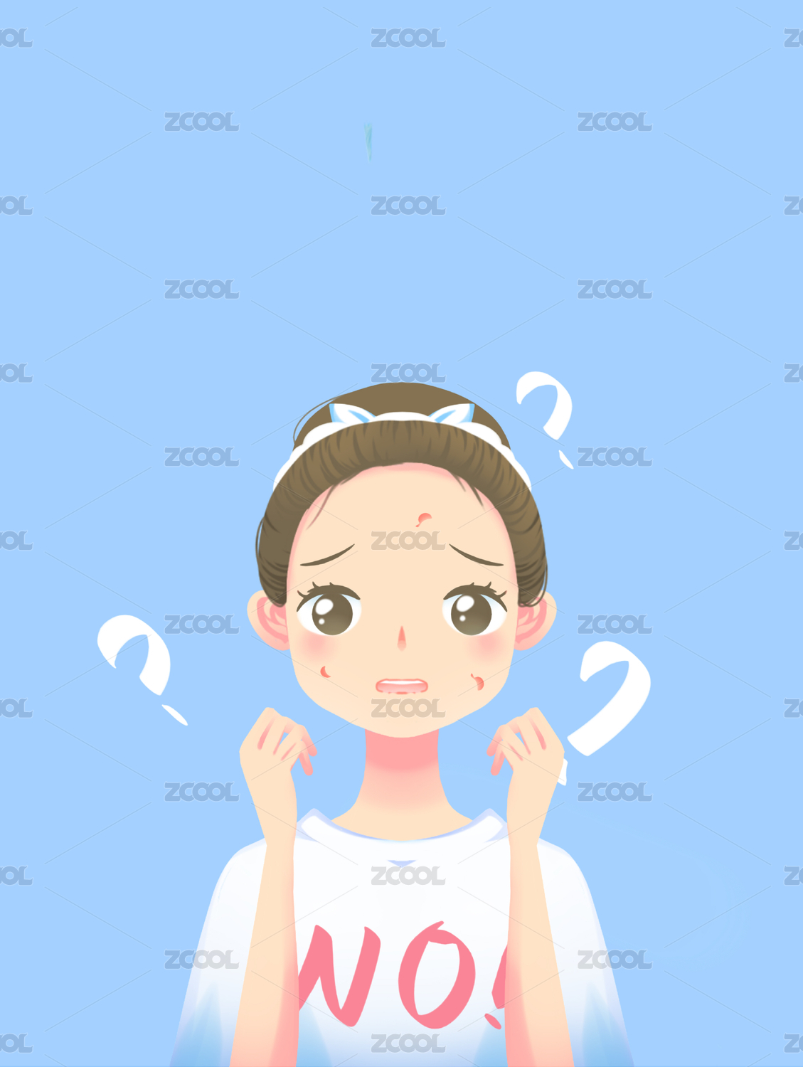 脸上长痘的女孩 表情痛苦困惑 卡通人物