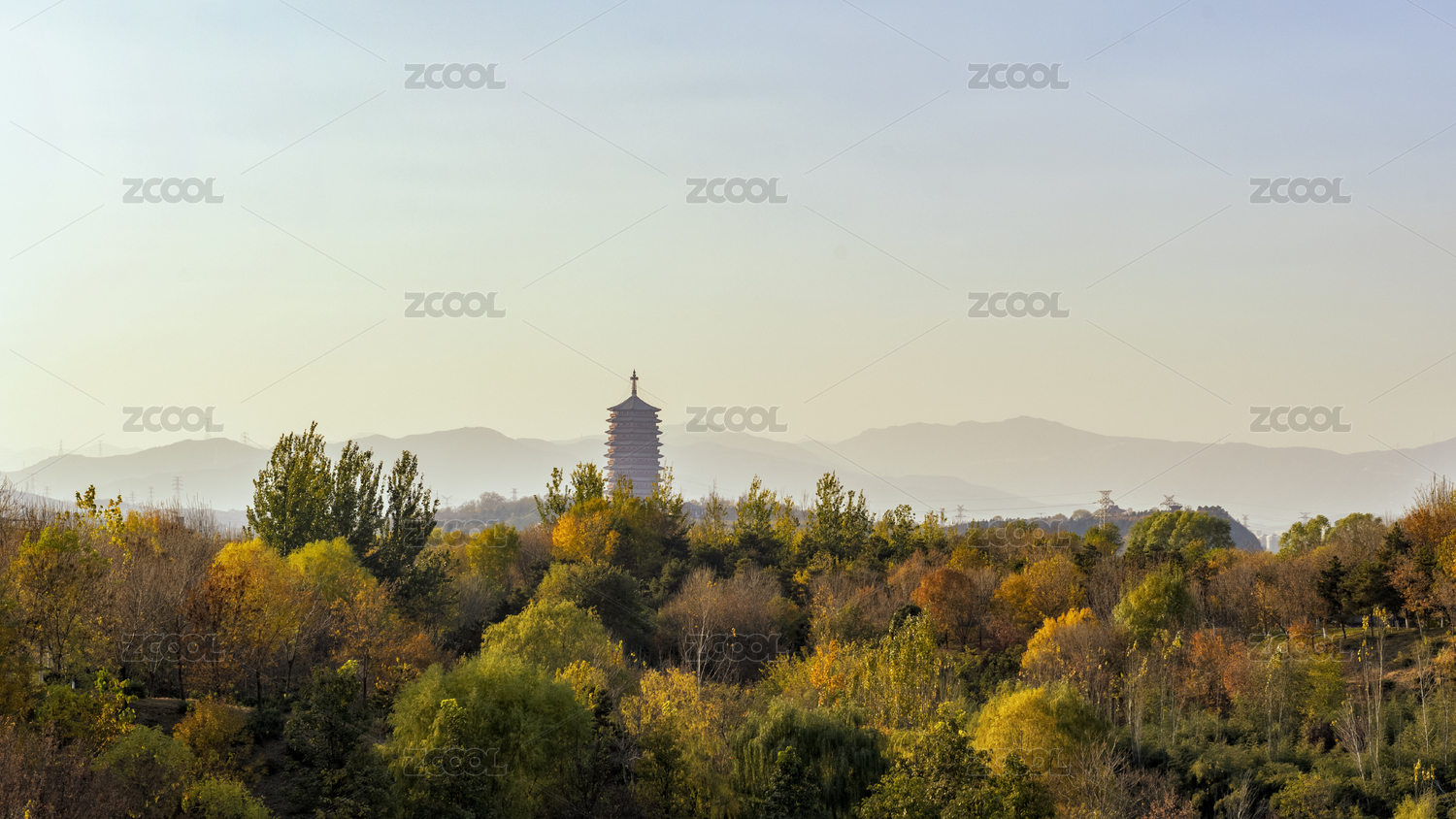 中国北京西郊永定塔秋景
