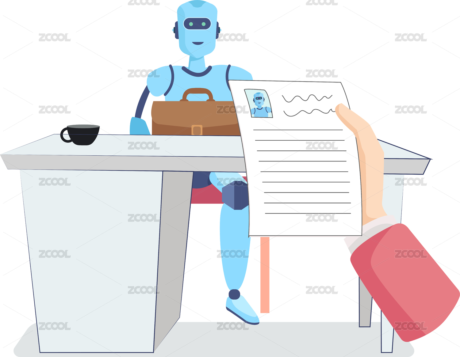 蓝色背景下台灯铅笔和面试人群微缩创意图