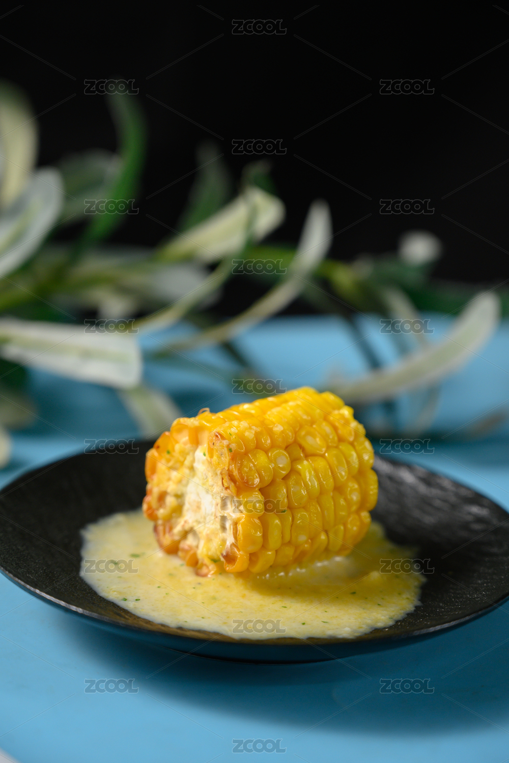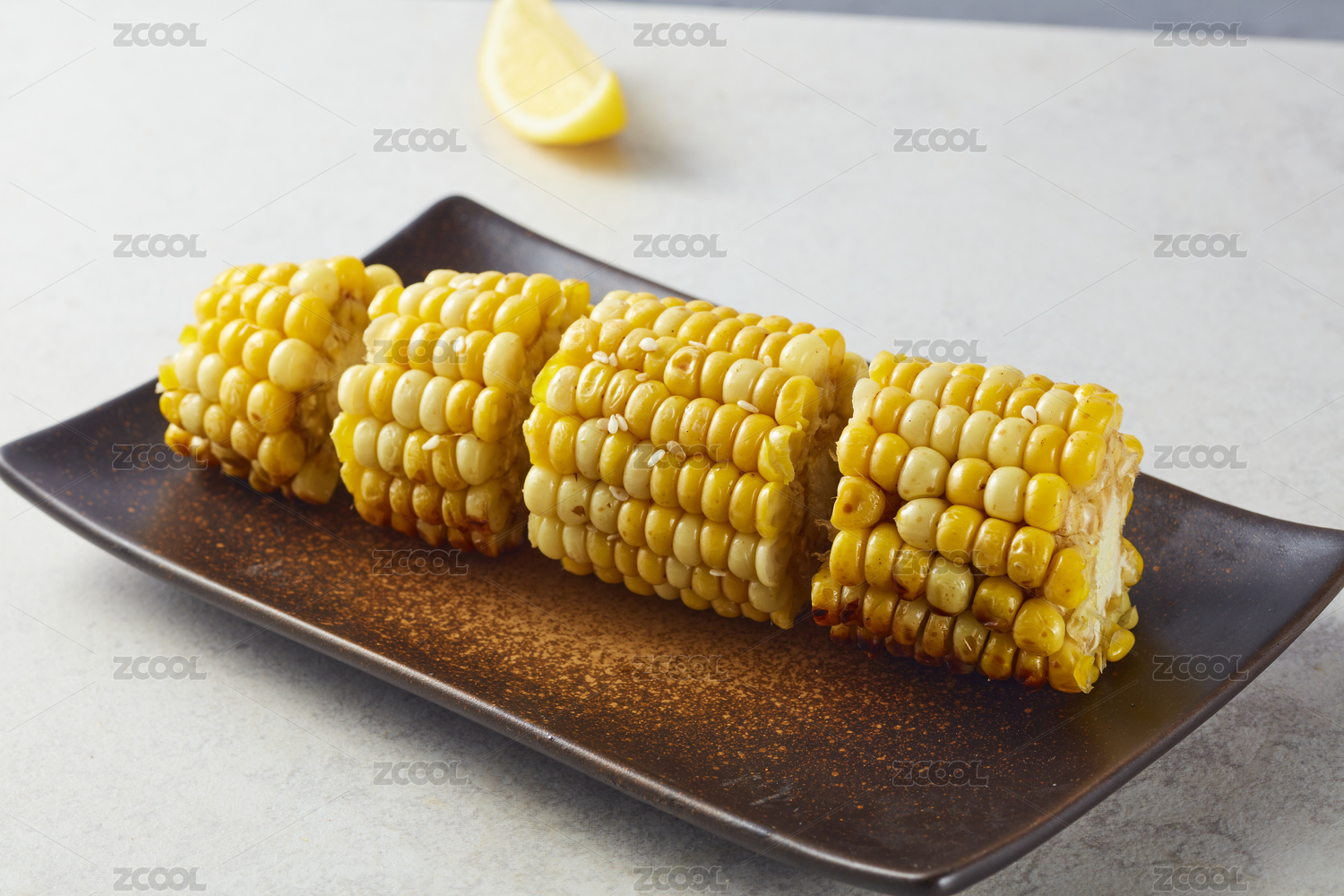 烤玉米放在盘子里