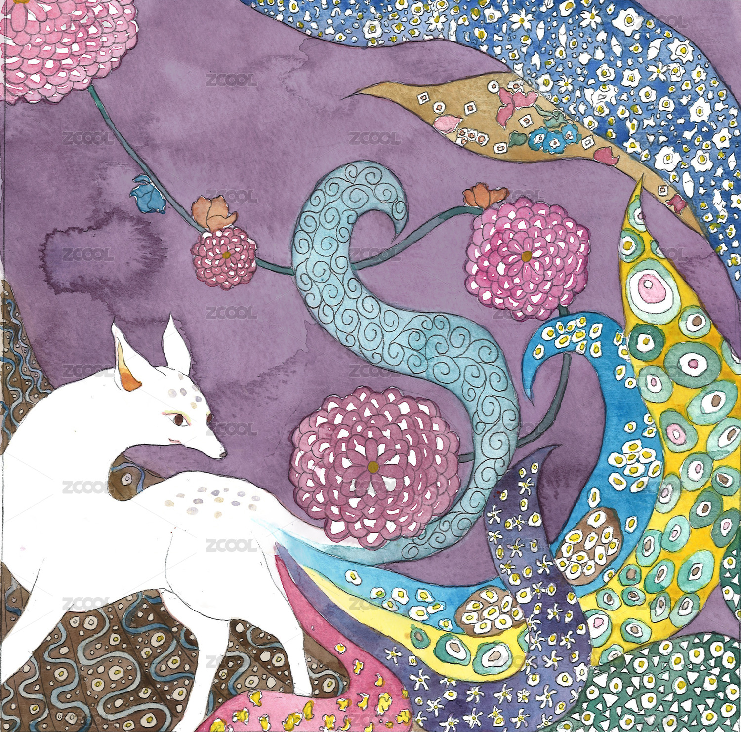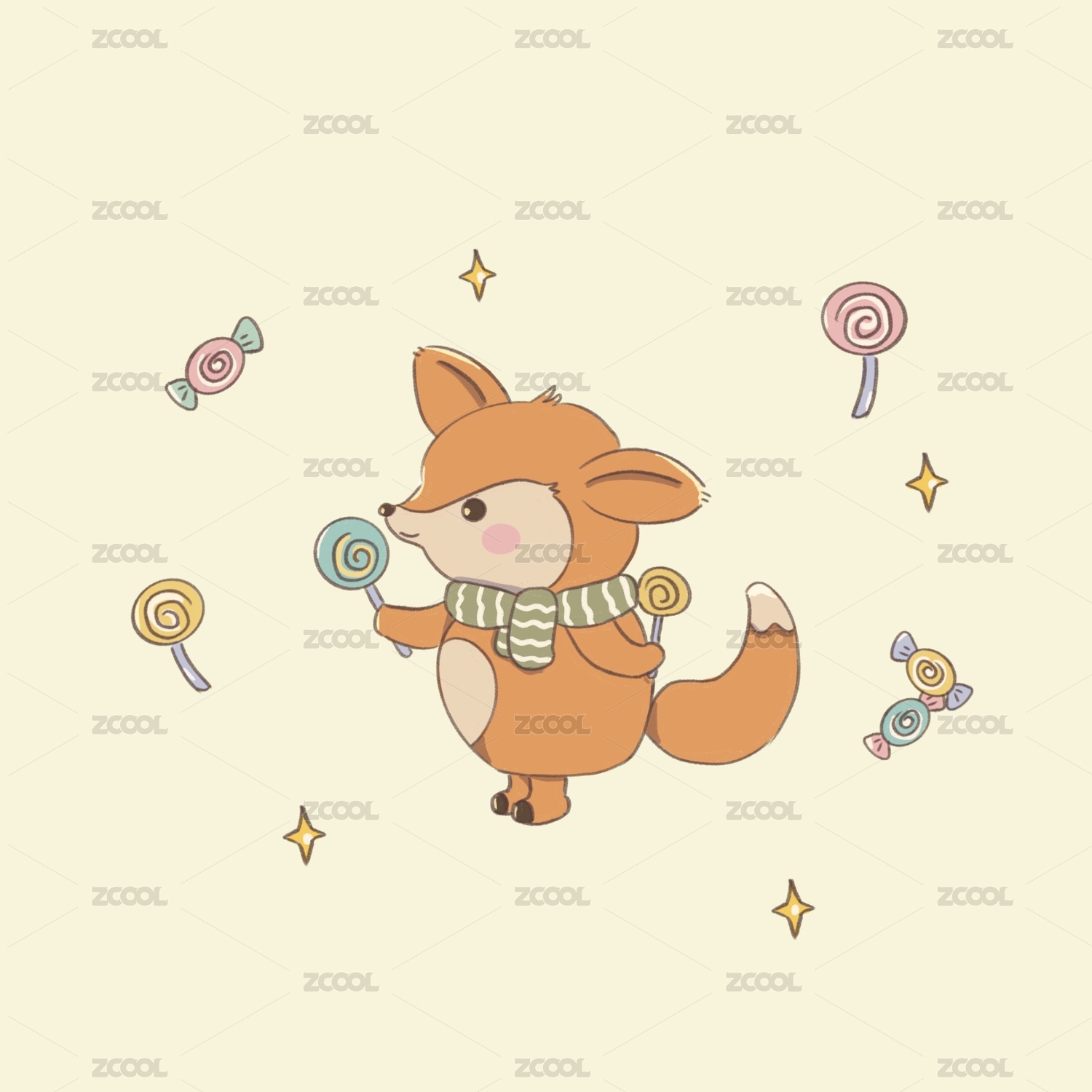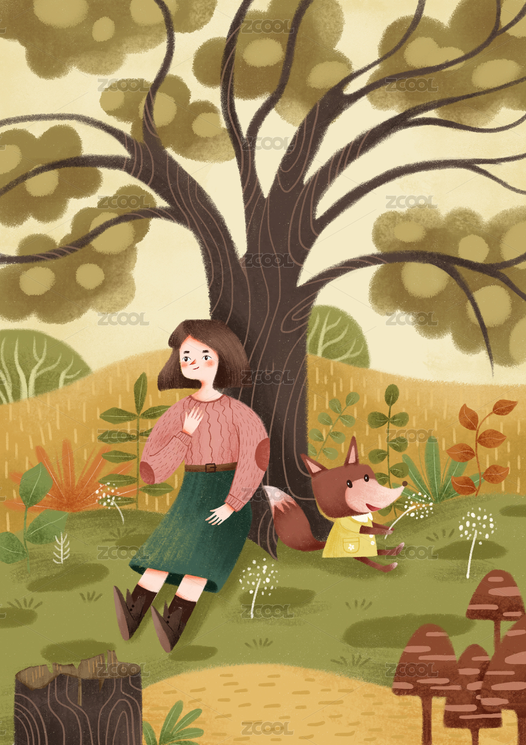 儿童治愈系小王子抱着小狐狸蓝天白云等风来