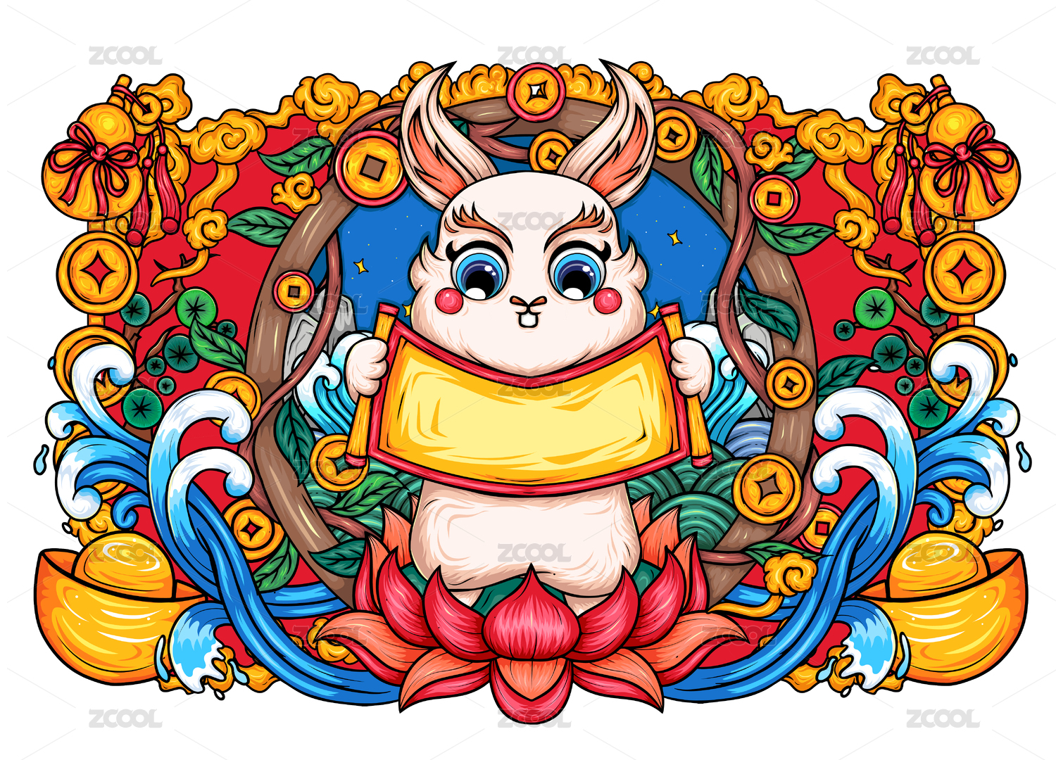 中国风古风汉服细线人物花卉插画-洛神喝茶