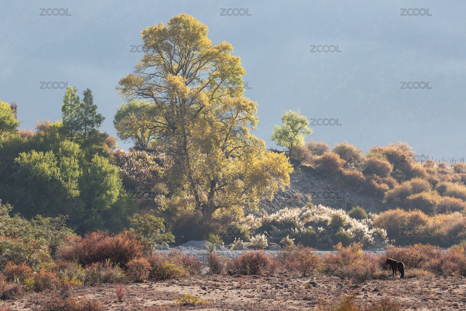 中国西藏林芝巴河镇到巴松措路边的秋色