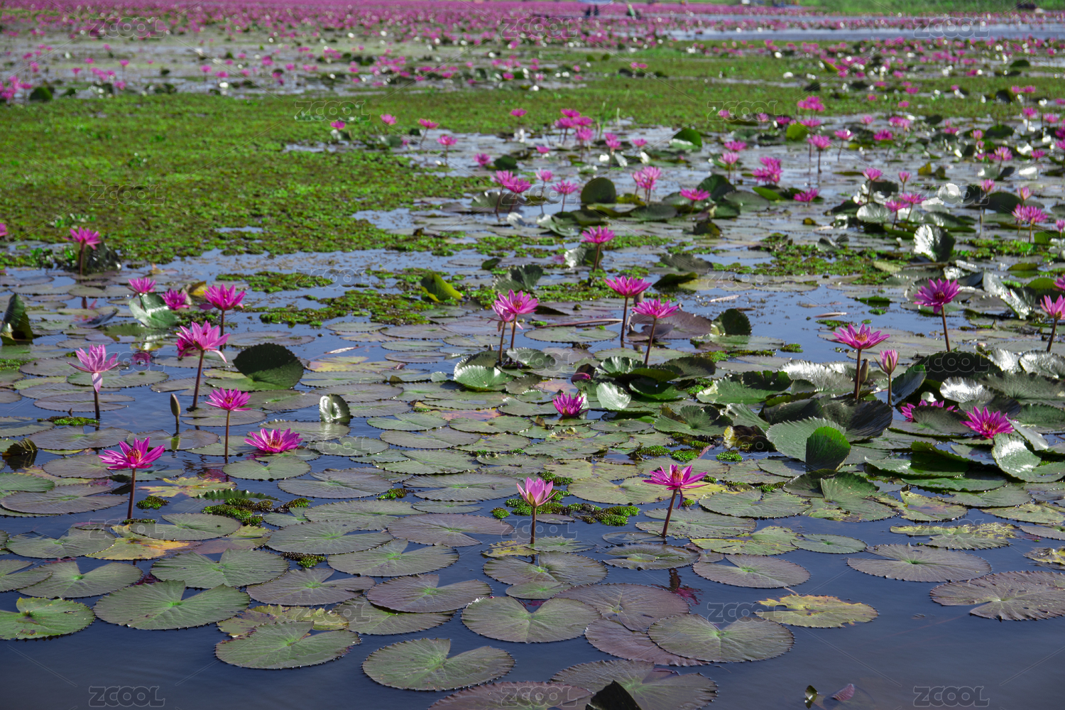 东南亚泰国乌隆红莲湖满是荷叶的湖面上的红莲花