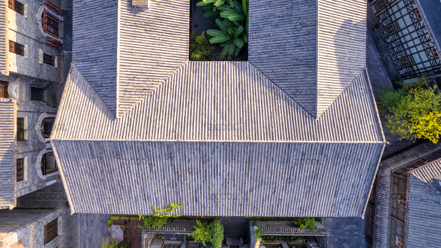 福州上下杭景区绿树环绕的古朴砖瓦房