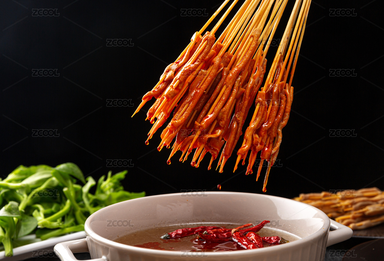 手拿着烧烤串串在碳火烤架上烤鸡翅
