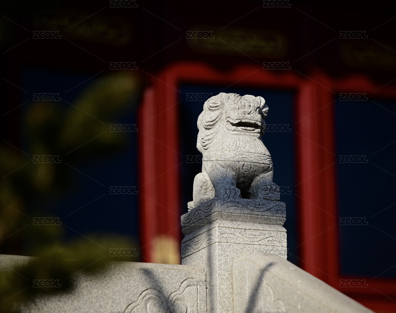 围栏上的石狮子