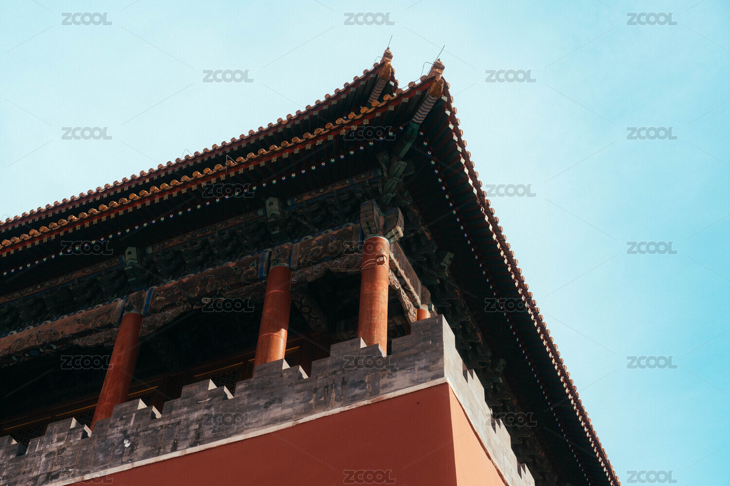 晴朗天气里的北京故宫角楼