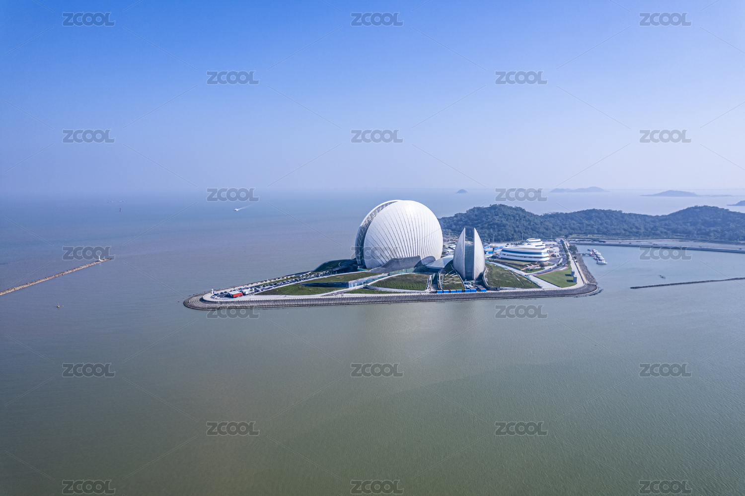 广东珠海日月贝地标航拍摄影配图