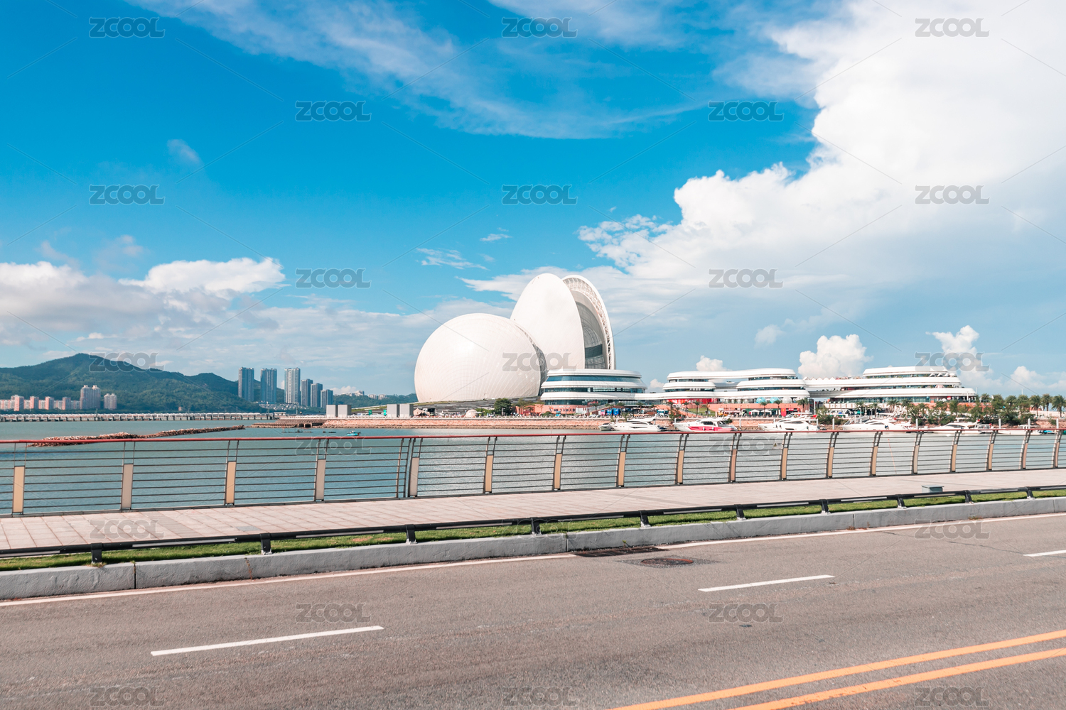 珠海大剧院日月贝蓝天白云
